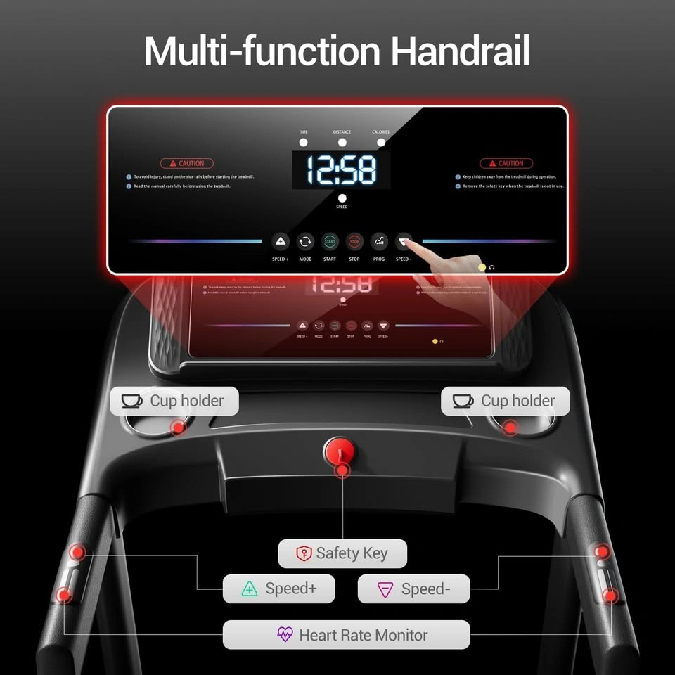 Easy to Use – Foldable treadmill with clear control panel.