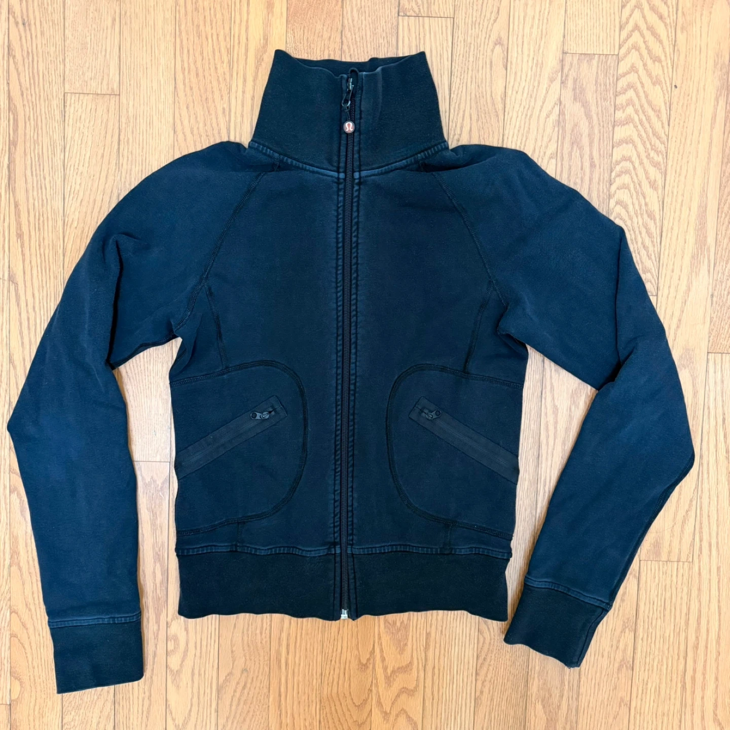 Very old! No stains, marks, tears, rips, etc., still in very good condition and high-quality. This is probably the first Lululemon piece I ever owned in my life and it’s extremely old, I can’t even figure out how old it is, but it is very similar to the define jackets. It’s fully black, including the zipper. Slight wear to the black on the zipper itself where you pull it. Faded information/size but it’s a six. And slightly faded Lululemon logo on the back. Has two zippered pockets. The zippers work well. This is super rare! Not sure what to price it at since I can’t figure out what exactly it’s called. If anyone knows, please let me know!