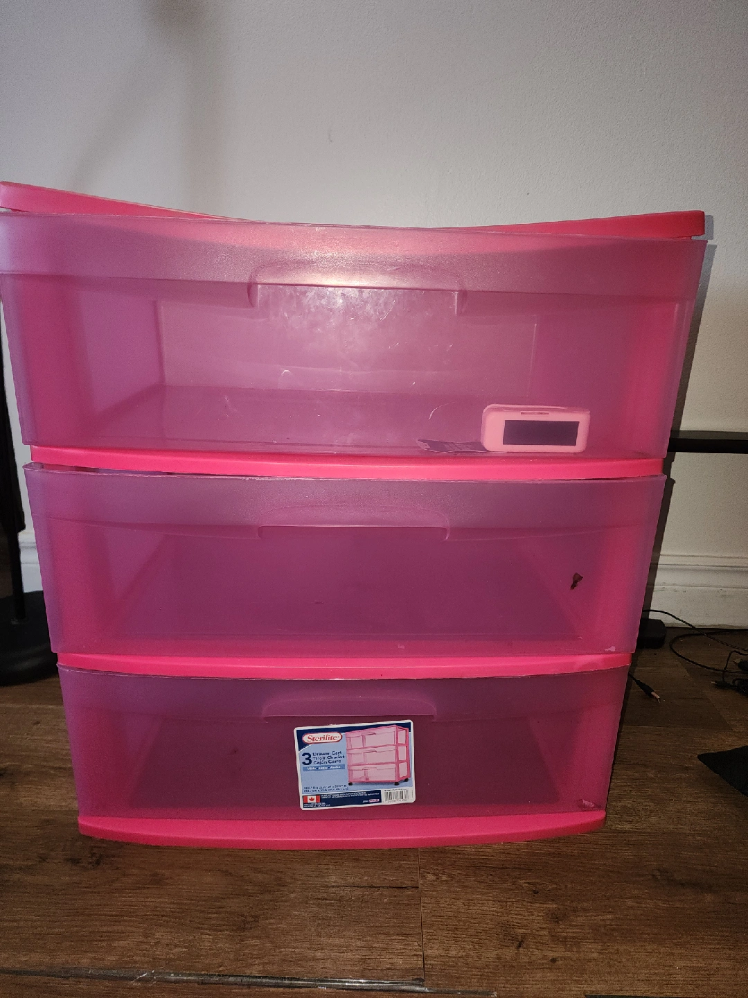 Keep your space organized with this Sterilite 3 Drawer Wide Cart! It's perfect for storing clothes, toys, or office supplies. The cart is in great condition and ready for a new home