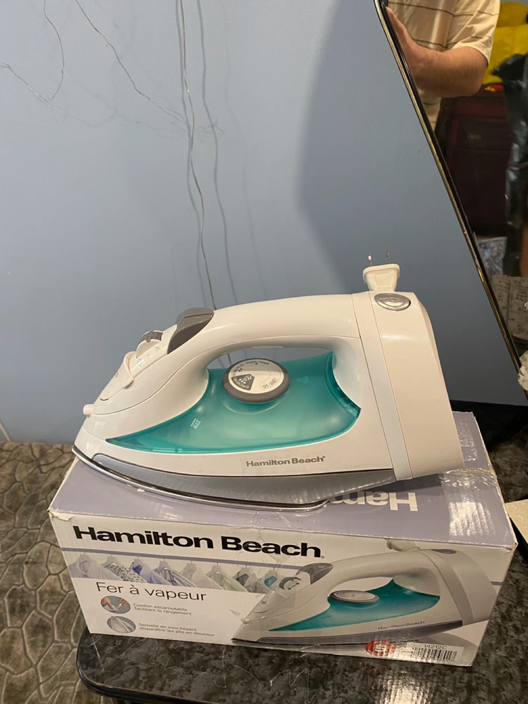 18Hamilton Beach steam iron in great condition! It features an easy storage with retractable cord and smoothly press out wrinkles with stainless steel soleplate. Comes with original box Cash only please Location-Scarborough,Toronto