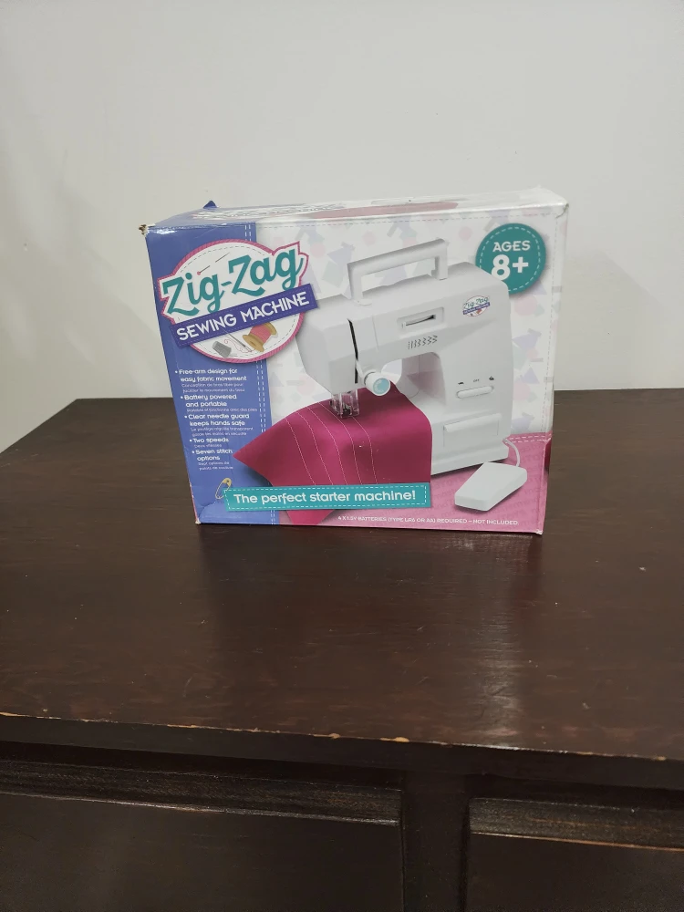 Selling a Zig-Zag Sewing Machine, perfect for beginners! It's battery powered and portable. Recommended for ages 8+. It also has two speeds and several stitch options!