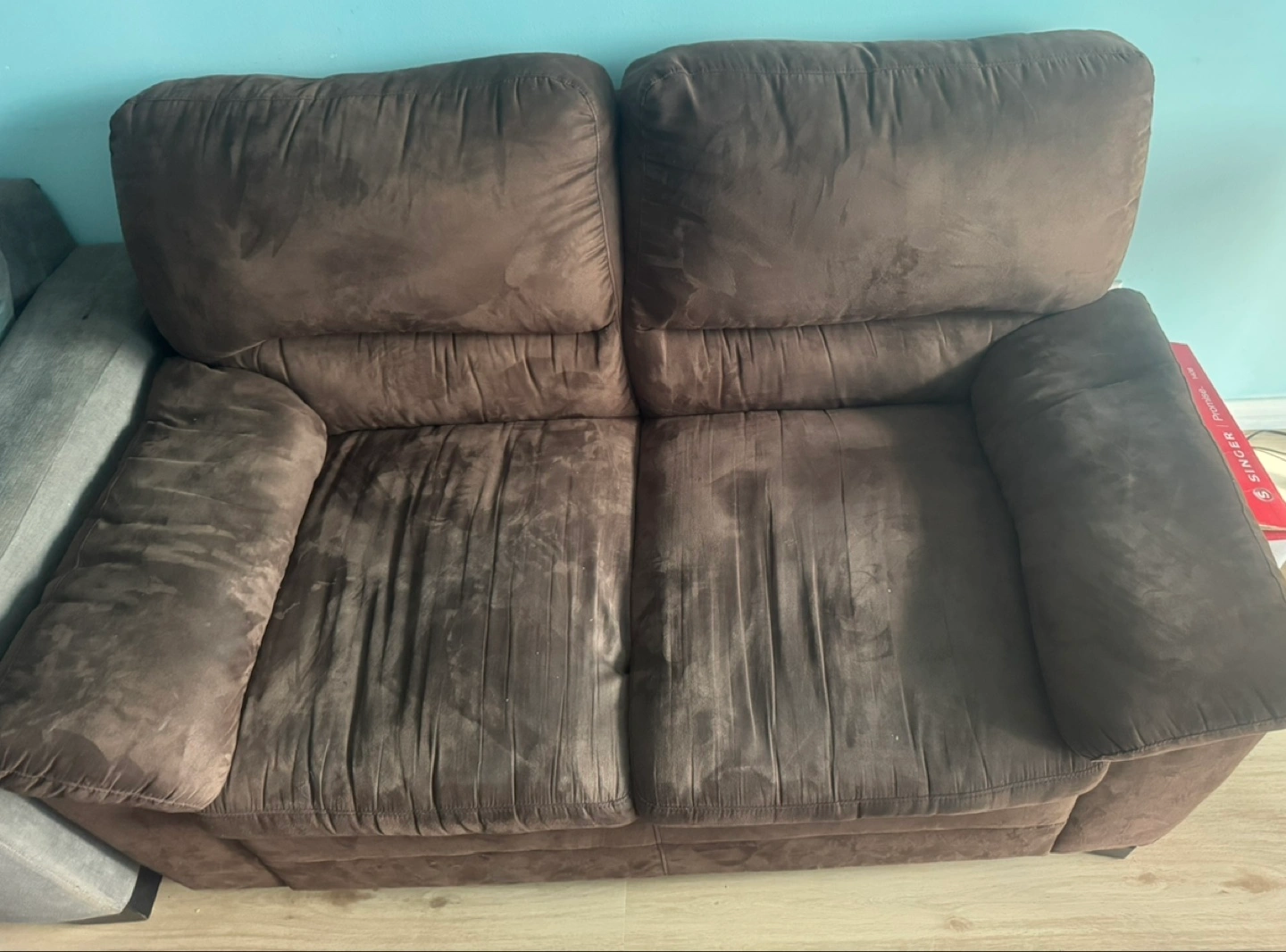 Pattern on Love seat/ sofa is Velvet design not a dirty/ dust.