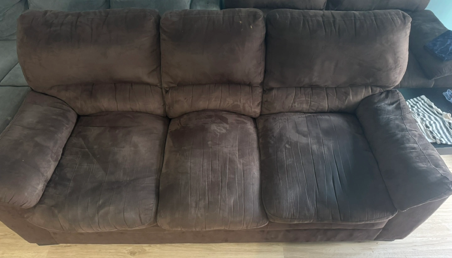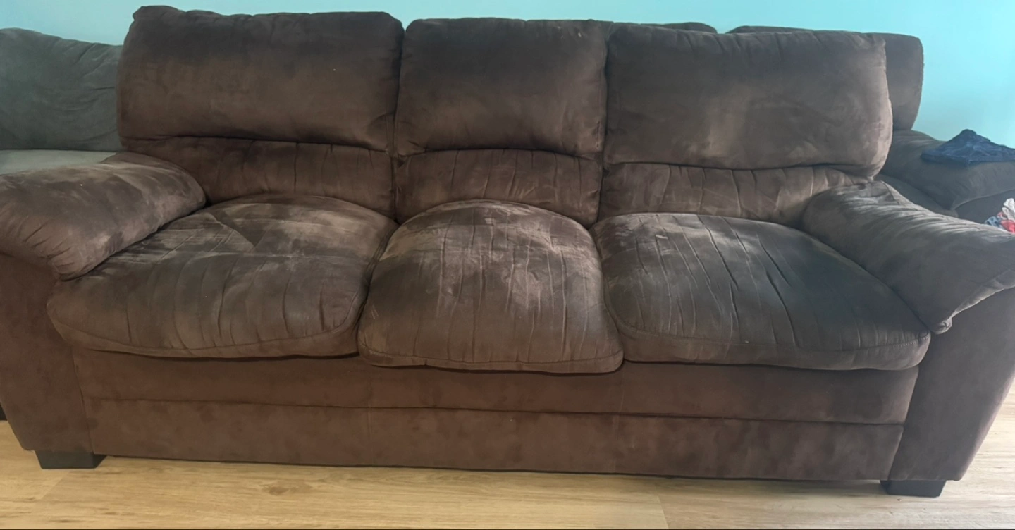 Selling a comfy brown sofa set! Includes a 3-seater and a 2-seater couch. Perfect for a living room or family room. It has some signs of use, but still has lots of life left!