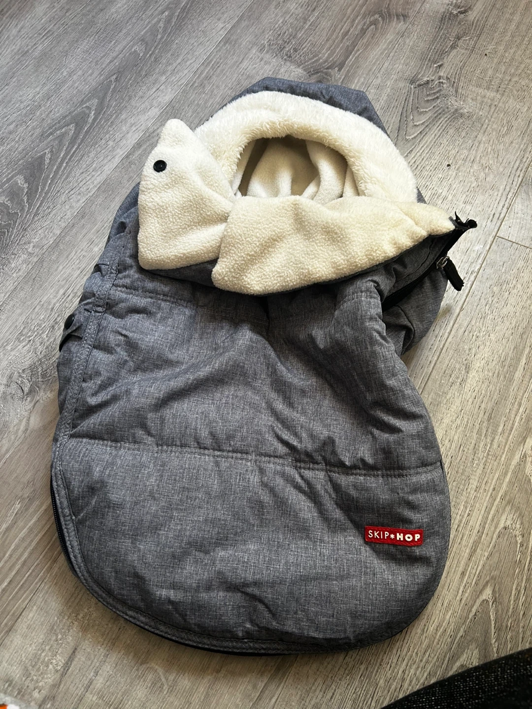 Keep your little one cozy with this Skip Hop Stroll & Go cover! It's in great condition and ready for chilly weather. The footmuff features a soft, plush interior and a weather-resistant exterior to keep your baby warm and dry. Perfect for stroller rides during fall, winter, and spring.