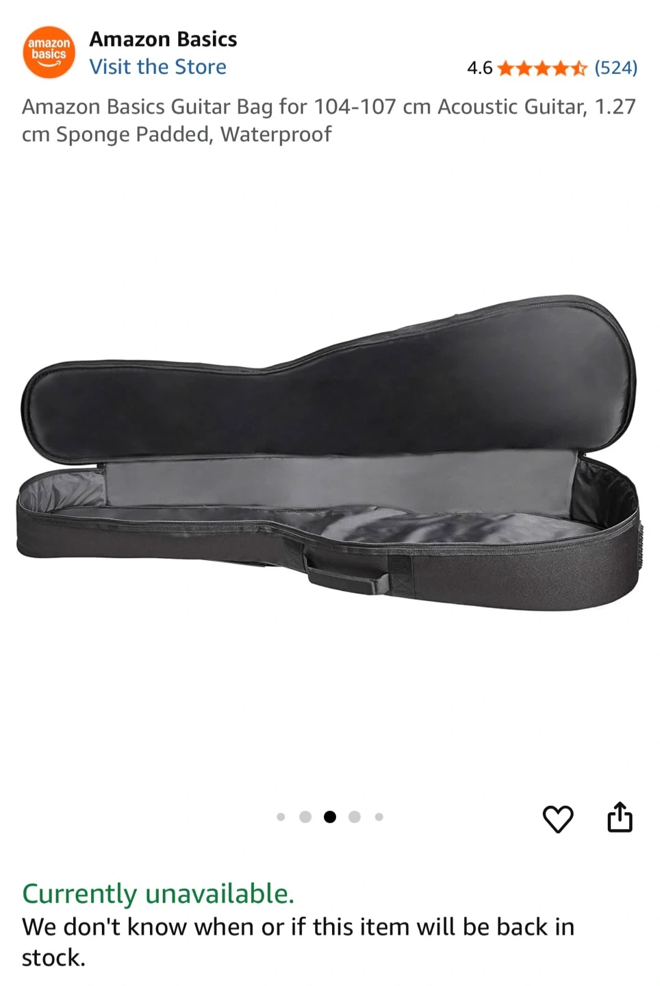 73Selling an Amazon Basics guitar bag, perfect for acoustic guitars sized 104-107 cm! It's sponge padded and waterproof to keep your instrument safe and sound. The bag is black and in great condition. Dimensions are approximately 43 inches in height, 6.5 inches in width, and 17.5 inches in depth