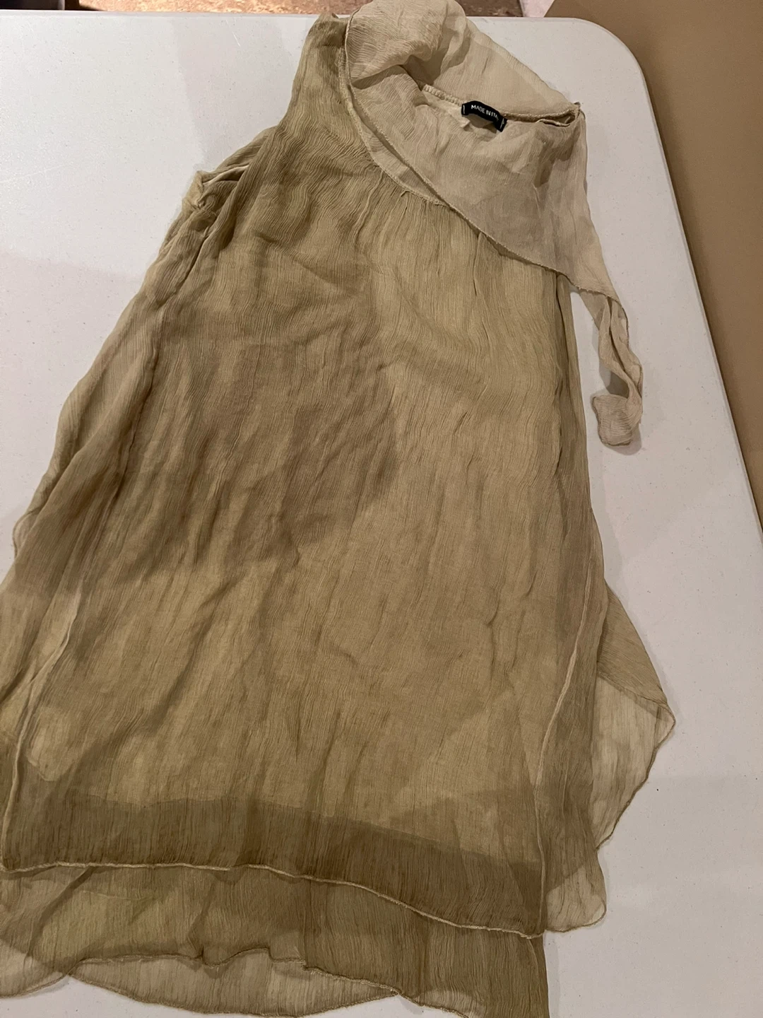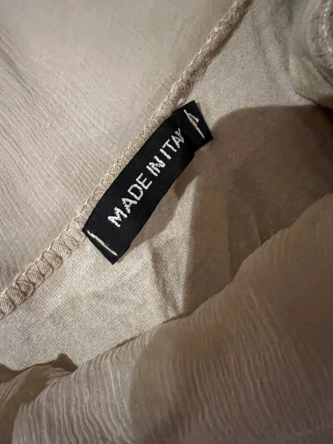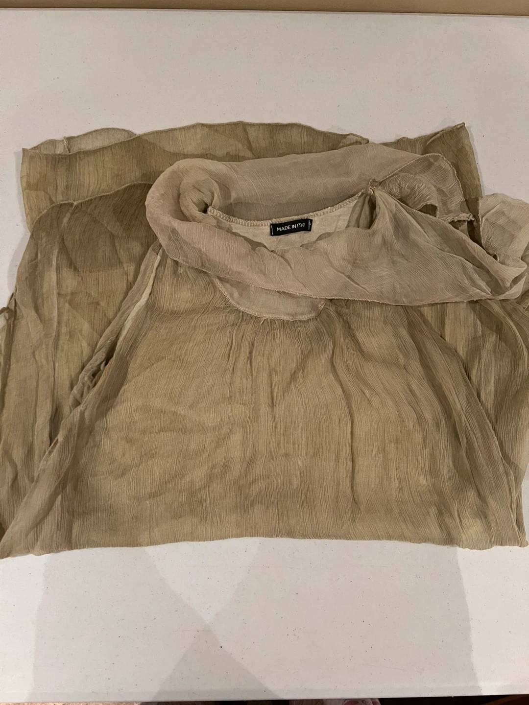 178A lovely beige/ green top made in Italy. It's a unique piece with a flowy design and lightweight material. Perfect for summer or layering!