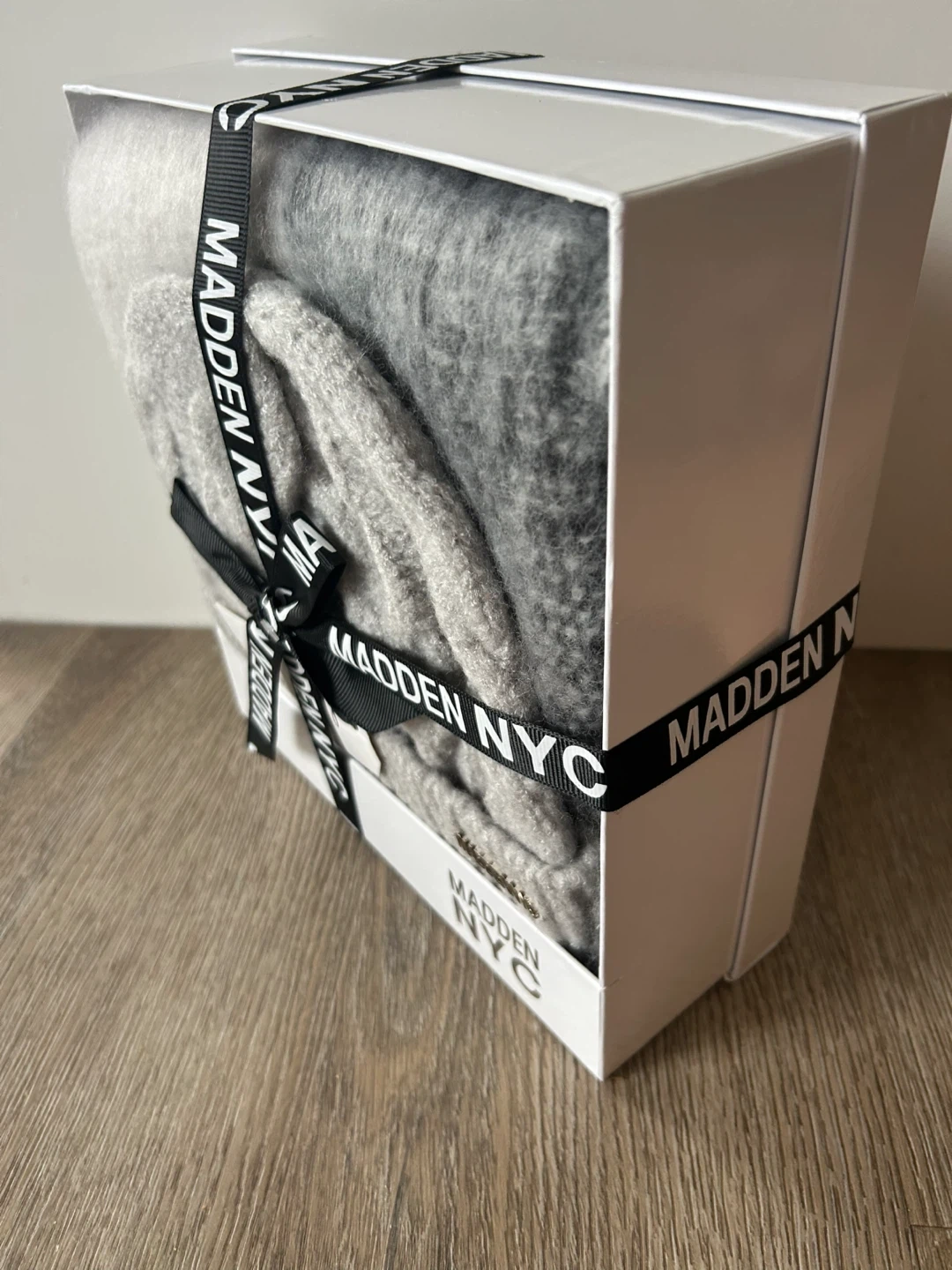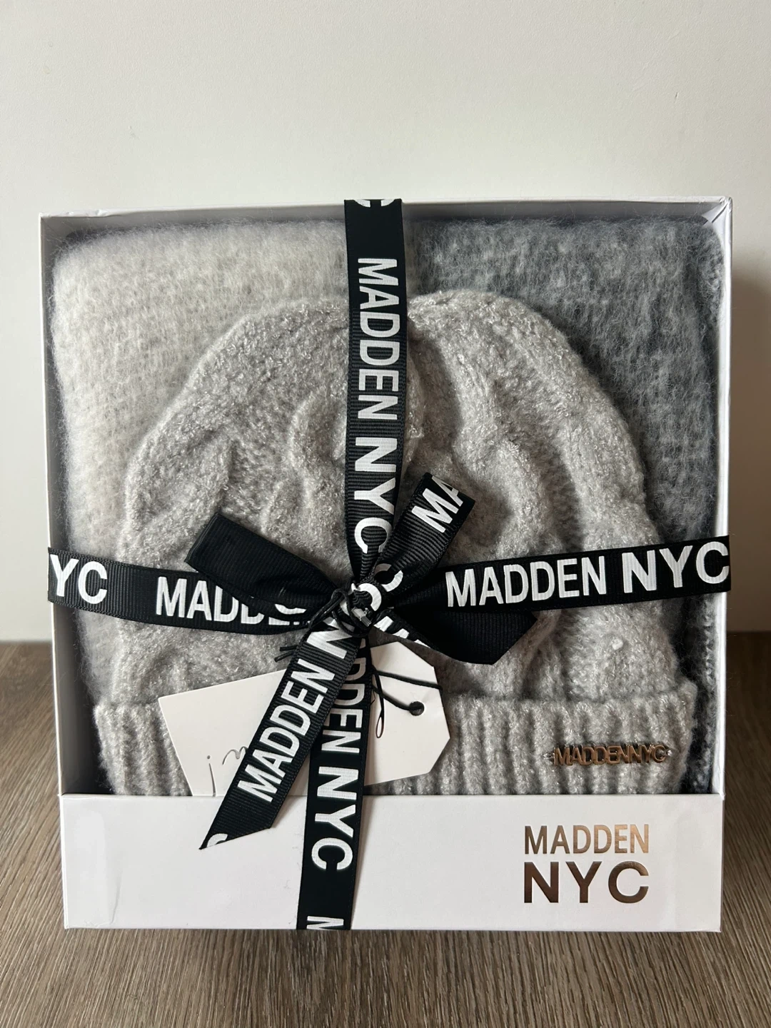 a brand new Madden NYC hat and scarf set! It comes in a lovely grey colour and includes the original box. Perfect for keeping warm this winter!