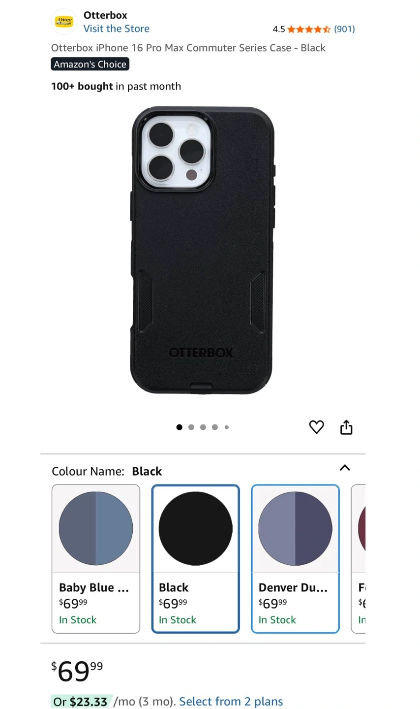 73Selling a black Otterbox Commuter Series case for the iPhone 16 Pro Max. This case provides 3X as many drops as military standard. It supports MagSafe chargers and accessories. Originally bought for $69.99. Box included!
