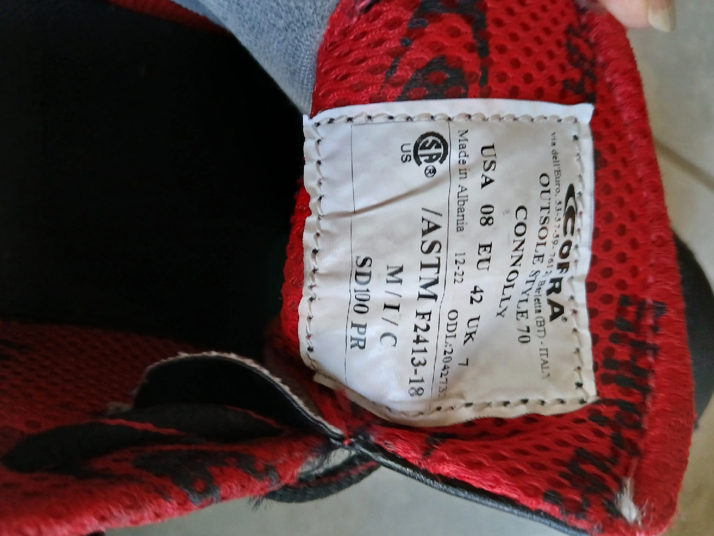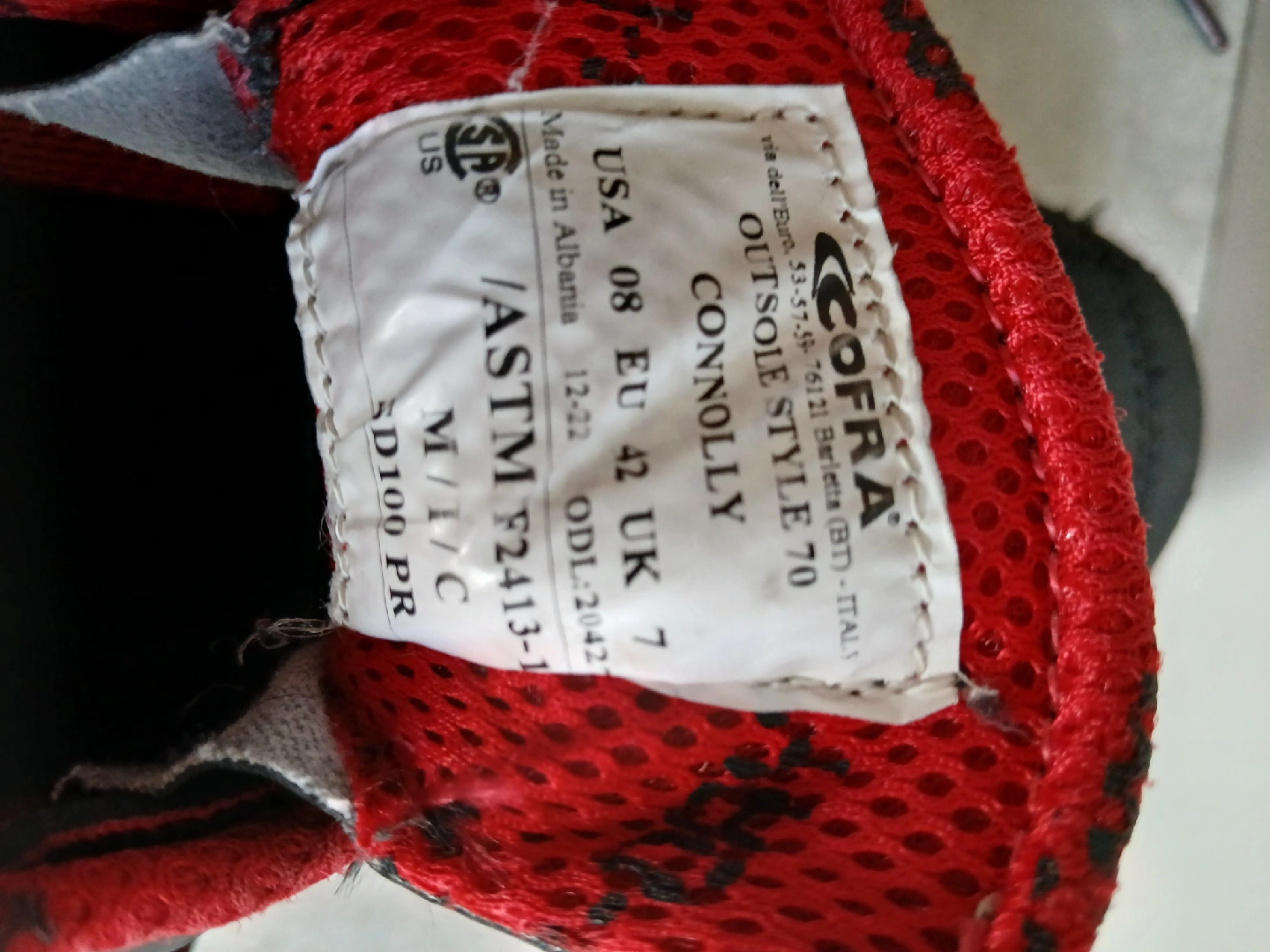 60Selling a pair of Cofra Connolly work shoes in size 8. They're black with red and grey accents. The outsole style is 70.