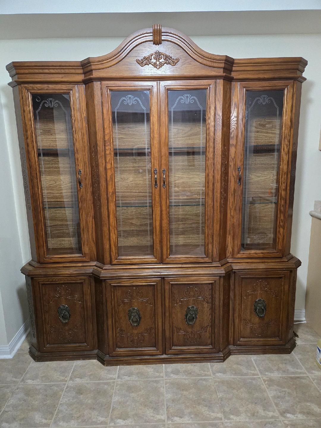 44Solid wood china cabinet — sturdy, clean, and in good condition. There’s a small crack in one of the glass panels (shown in photo), but it doesn’t affect use or stability. I just don’t have space for it anymore, so I’m giving it away FREE. ✅ Ground-level pickup, no stairs ✅ I can help load OR deliver today if you’re nearby (Bowmanville / Clarington area) ✅ Smoke-free home Please message only if you’re ready to pick up or receive delivery today. Hoping to have it gone by tonight!