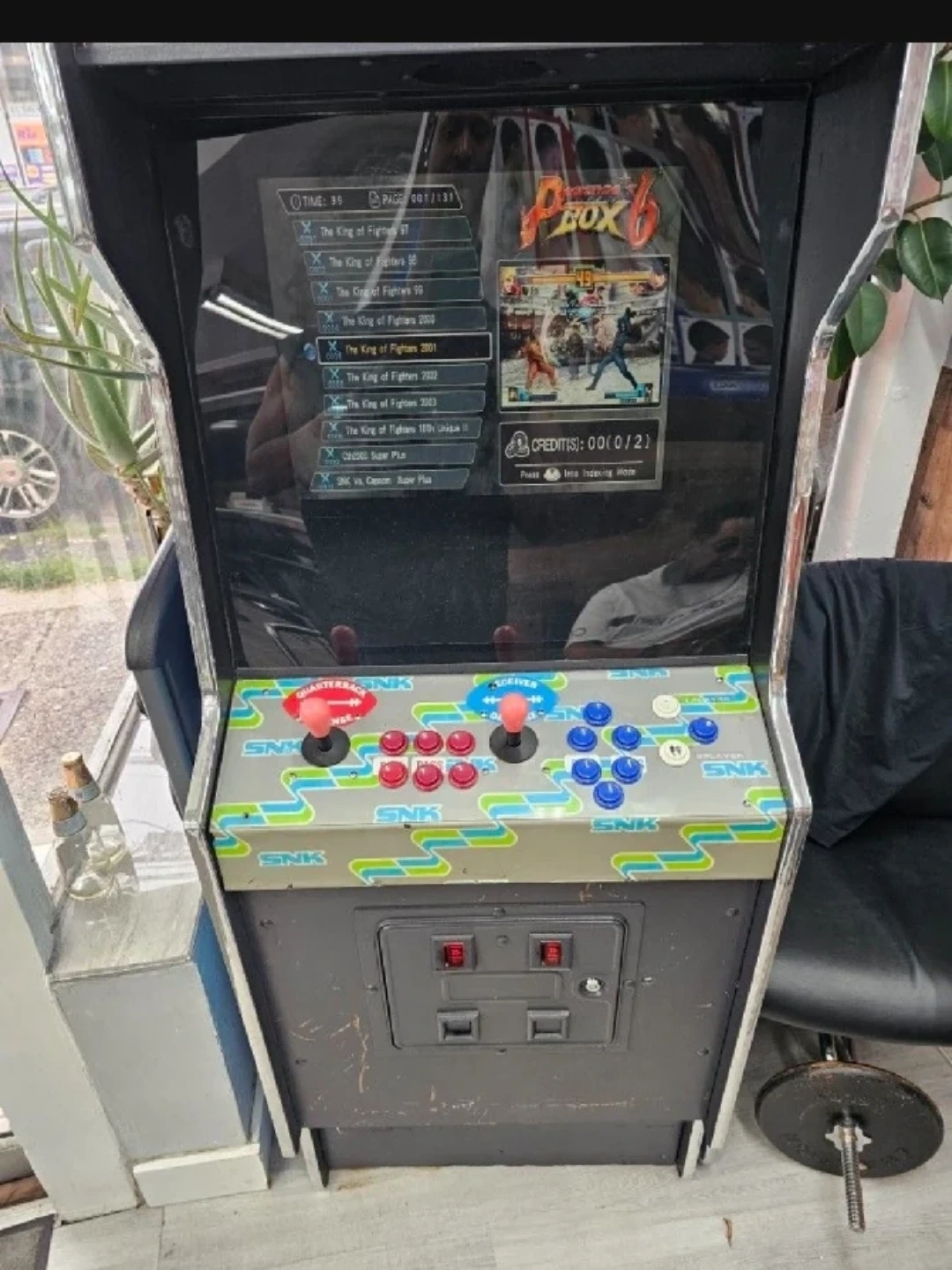 Selling a Multigame arcade machine. It features a variety of games including Mortal Kombat and The King of Fighters. It's in used condition.