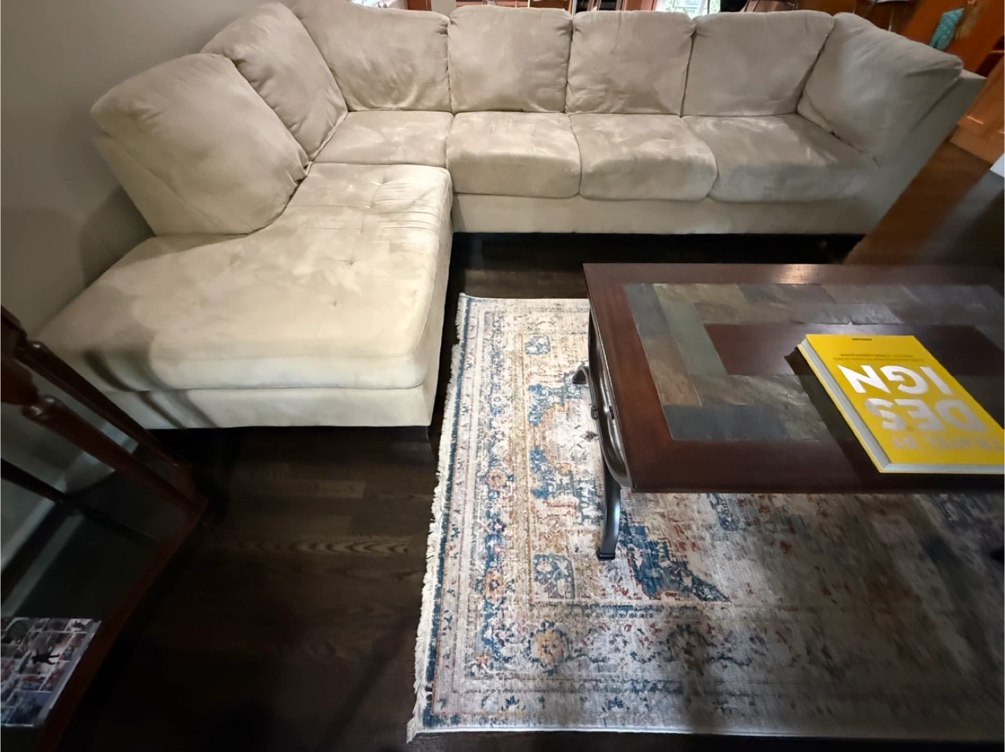 Selling a comfy beige sectional sofa! It's in great shape and perfect for a living room or family room. The sectional design offers lots of seating and a cozy spot to relax. It's a great addition to any home!