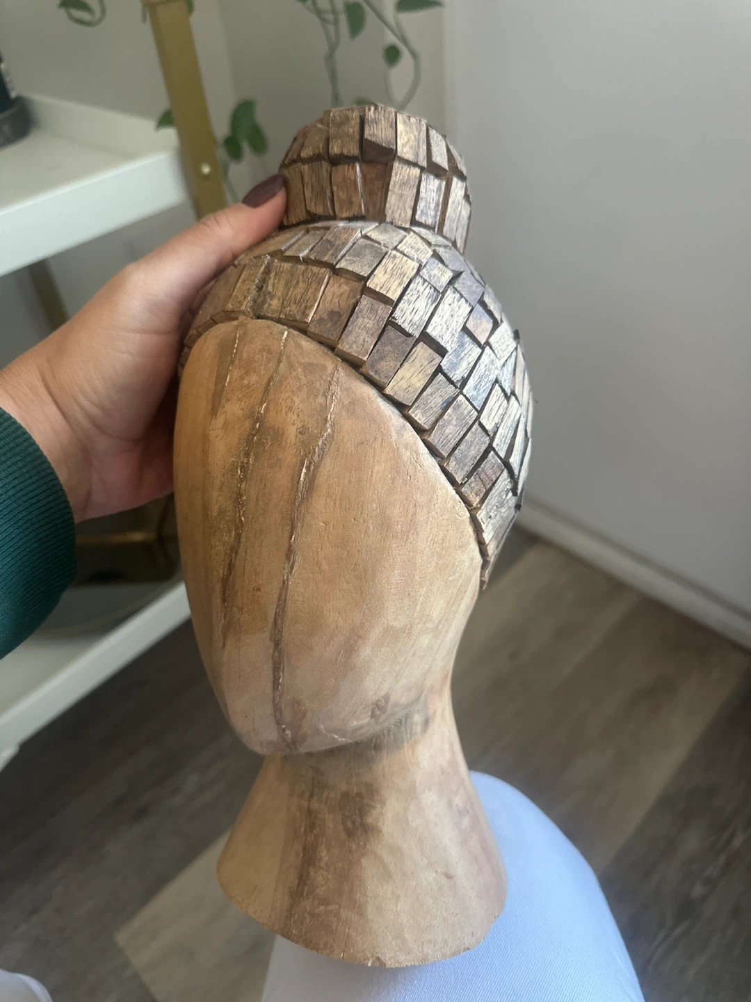 158Unique wooden head sculpture, perfect for adding a touch of artistry to your home decor. It's in good condition and ready to find a new home!