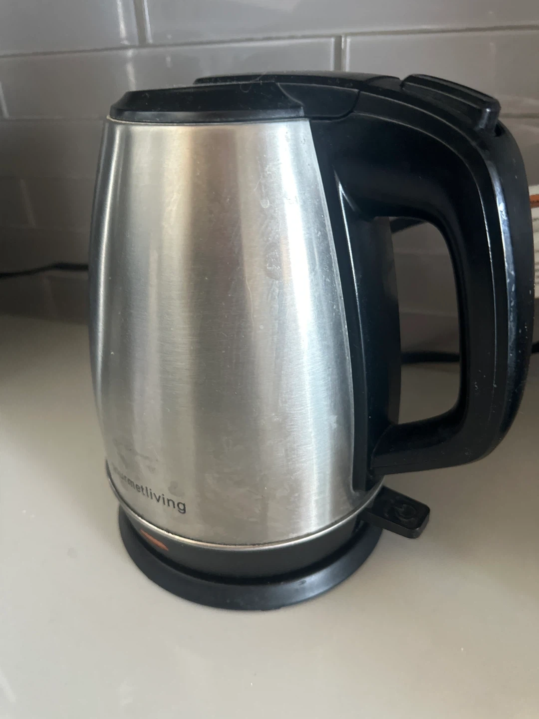 158Selling a Gourmet Living electric kettle. It's in good condition and ready to quickly boil water for your tea or coffee. It has a stainless steel finish and a black handle and base. Perfect for any kitchen!