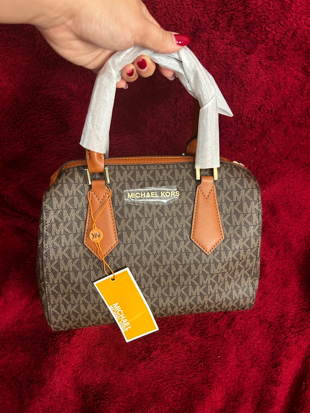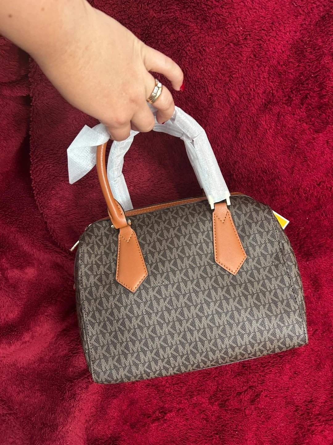 Selling a beautiful inspired Michael Kors satchel. It's in like-new condition and has a stylish brown colour. Perfect for everyday use or a special occasion! It features the MK logo pattern all over the bag.