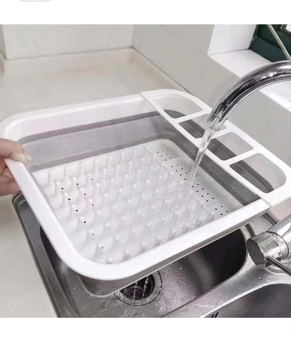 Declutter your kitchen with this handy collapsible dish drying rack! It's perfect for small spaces and easy to store when not in use. Great for keeping your dishes organized and dry