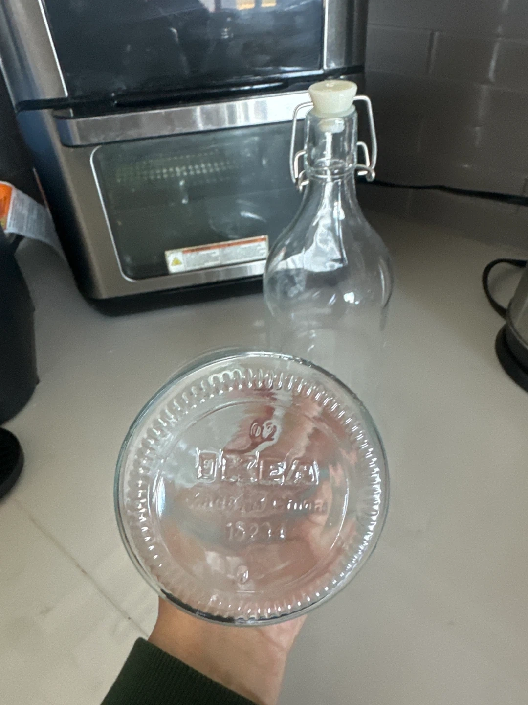 158Selling a set of two Bormioli Rocco swing top glass bottles. These are perfect for storing beverages or homemade sauces. They're in great condition and ready for a new home!