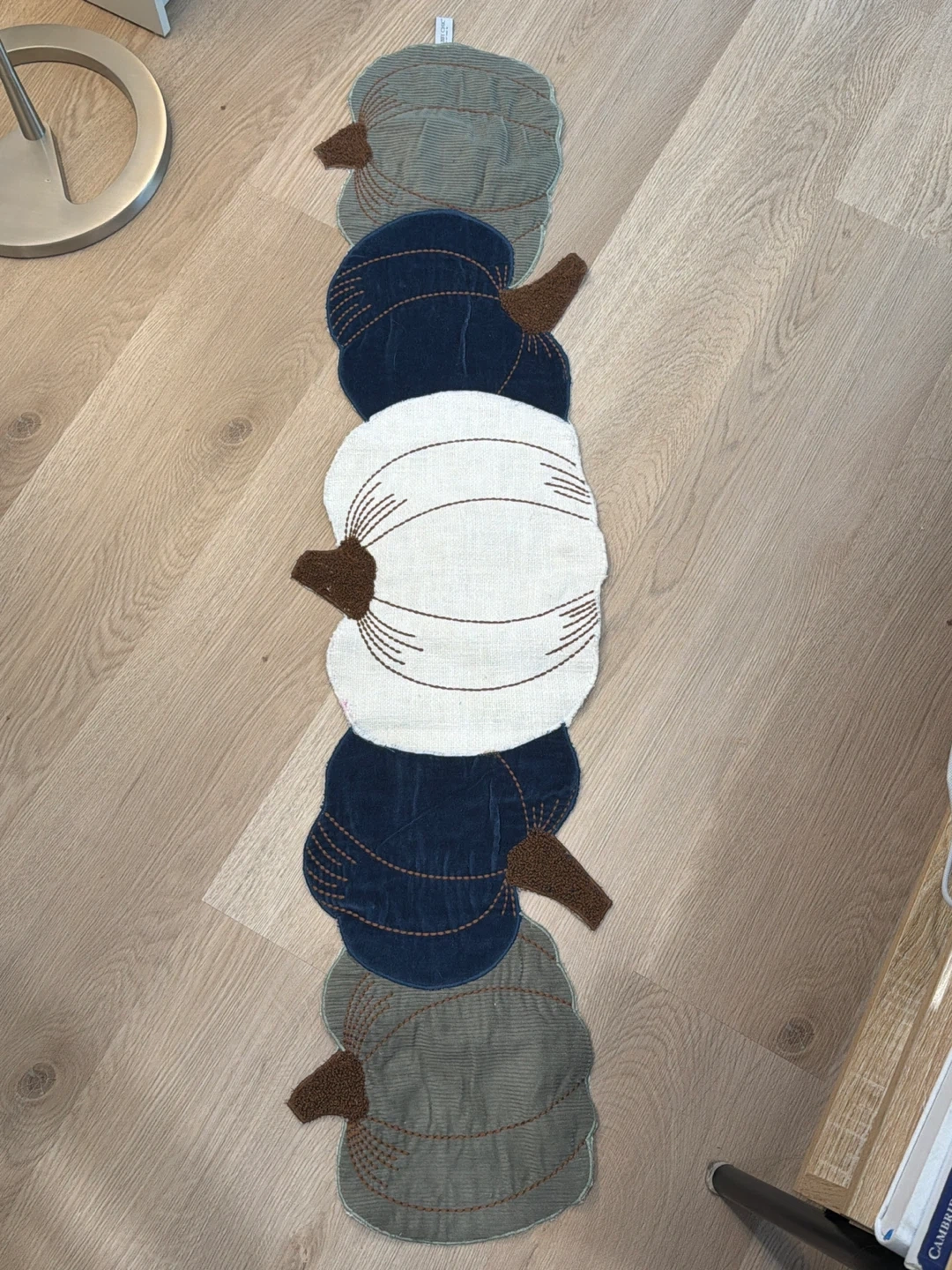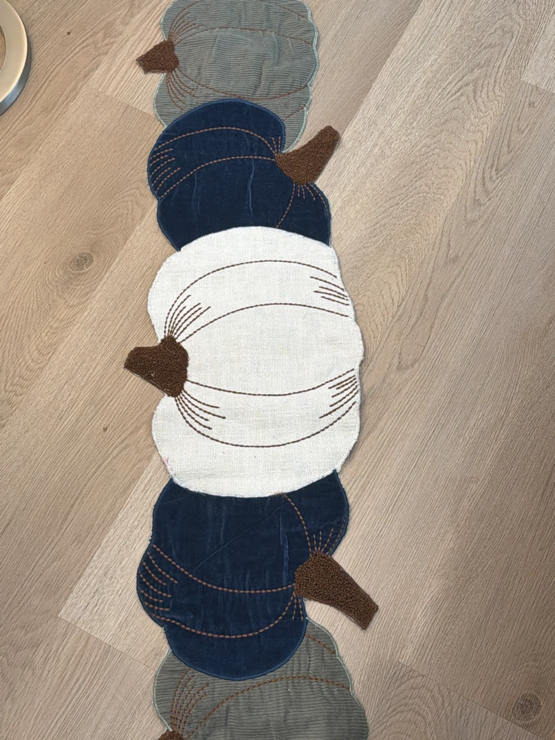 15Add a touch of autumn charm to your home with this Shabby Chic table runner! It features a delightful pumpkin design in a mix of colours. Made with 100% cotton, it's perfect for adding a cozy and festive vibe to your dining table or any surface in your home