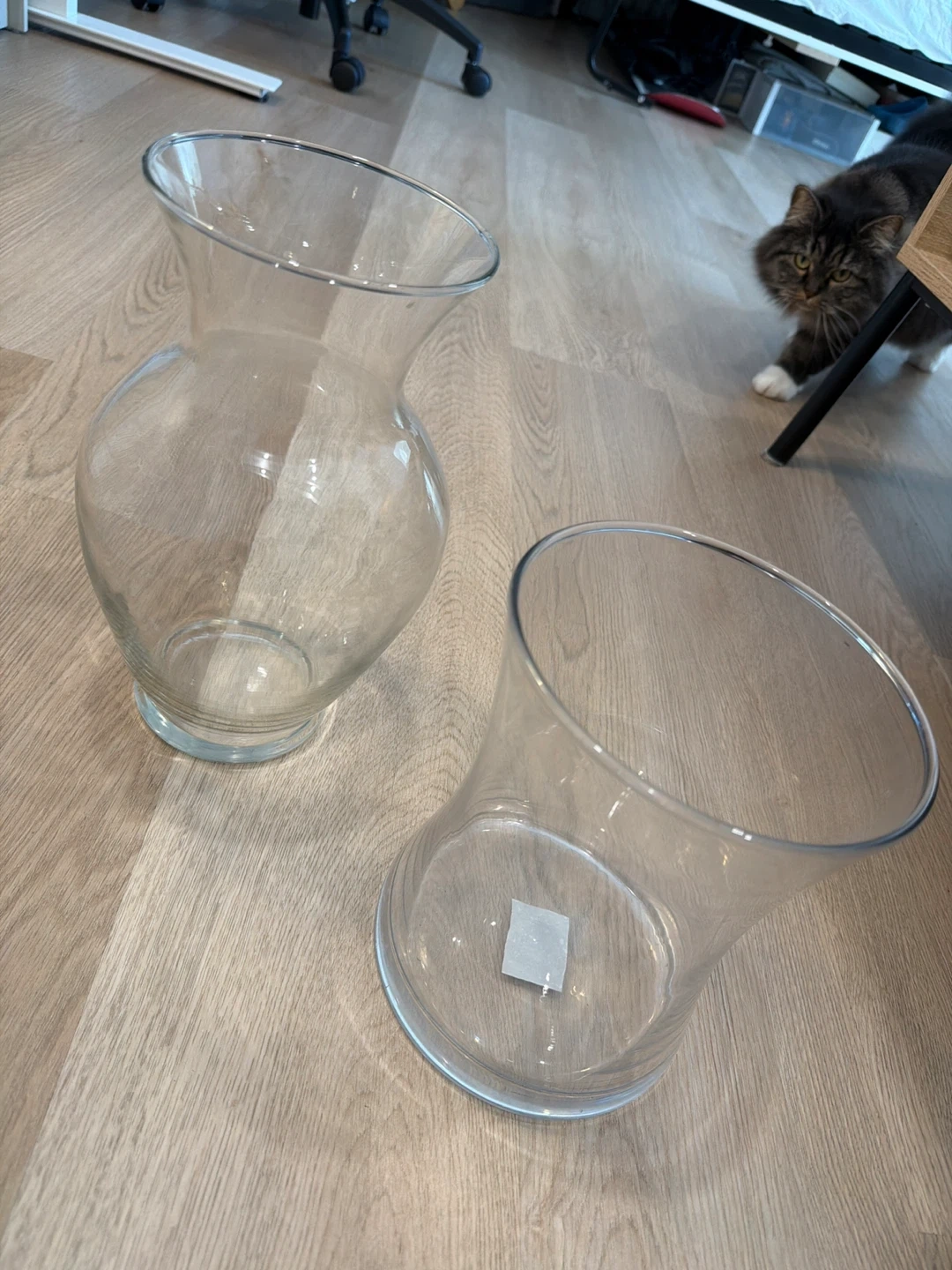15Selling a set of two clear glass flower vases. They are in great condition and ready to display your favourite blooms! Perfect for adding a touch of elegance to any room.