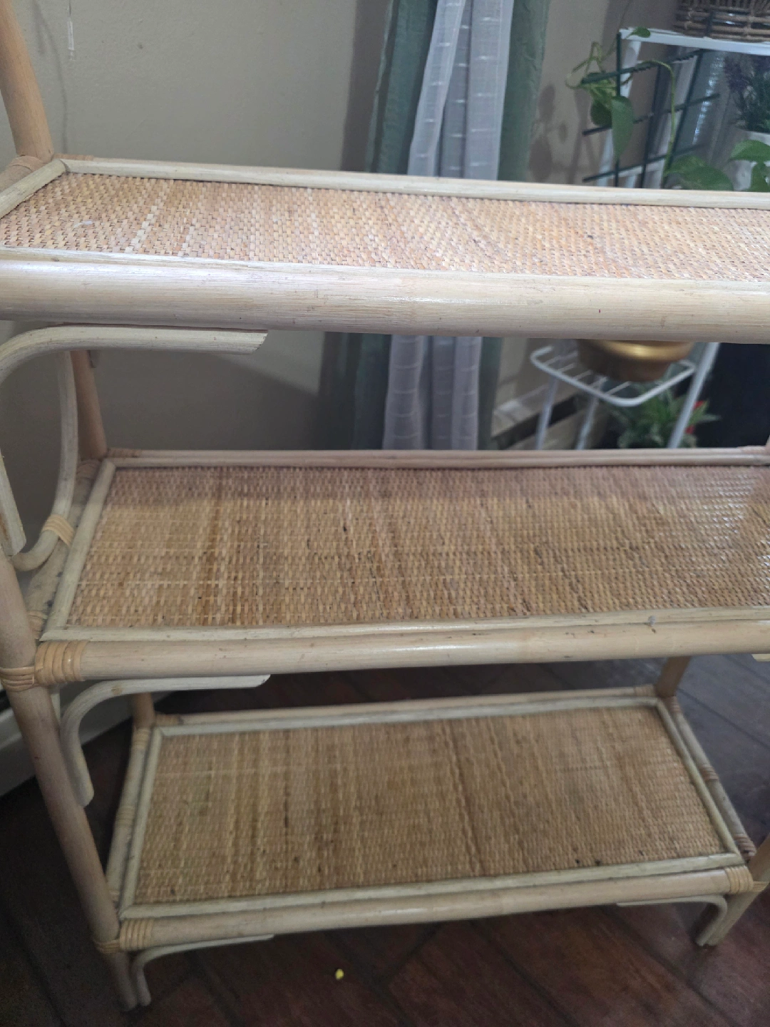 Selling a charming rattan shelf unit! It's perfect for adding a touch of natural texture to any room. Great for displaying plants, books, or other decorative items. The shelves are sturdy and in good condition.
