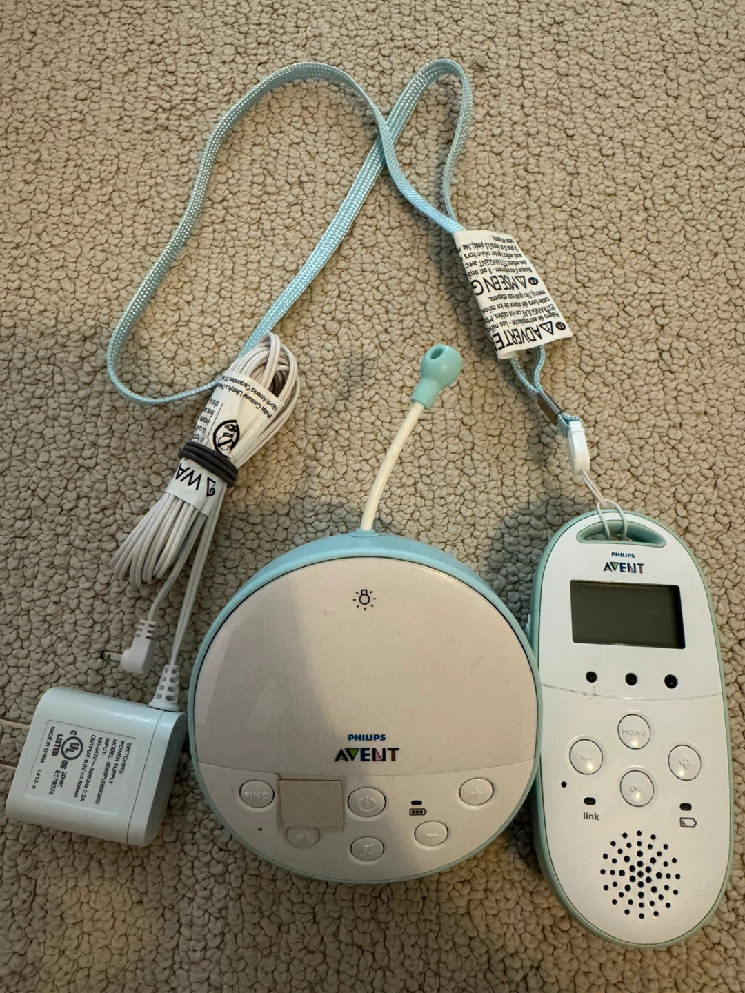 Selling a Philips Avent baby monitor in great condition! Includes the parent unit, baby unit, and charger. It's been very reliable for keeping an eye on my little one. Ready for a new home!
