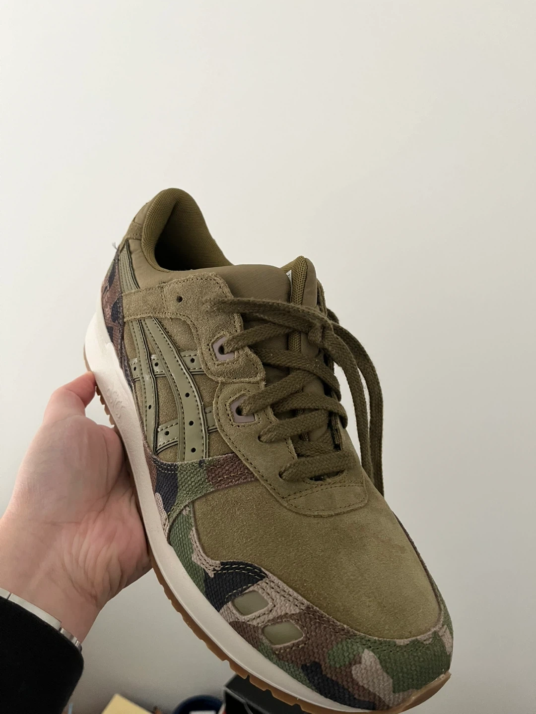 10These Asics Gel-Lyte III sneakers feature a unique olive and camouflage design. They're in great condition and ready for a new home. A stylish and comfortable choice for everyday wear