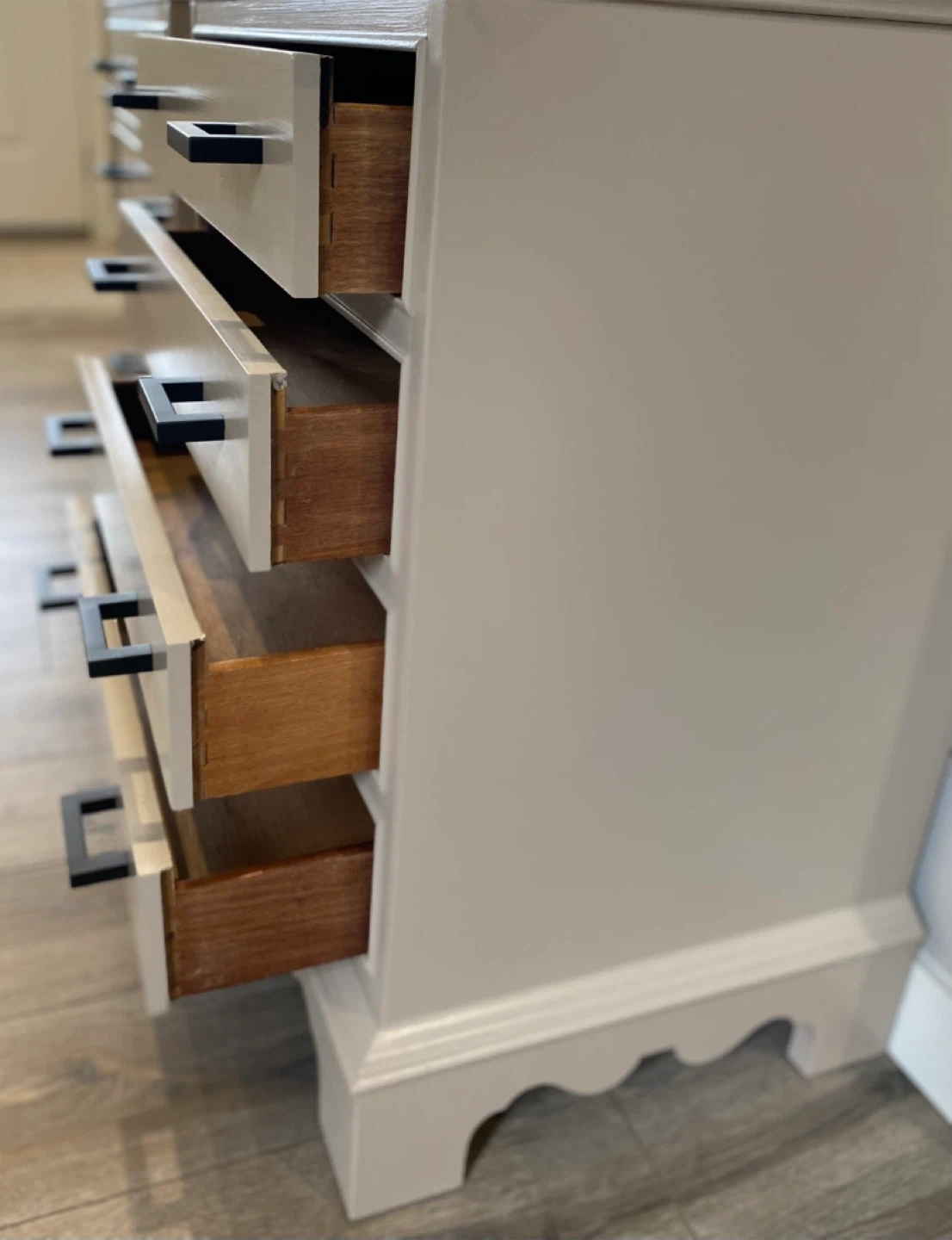 Featuring 4 dovetailed drawers each with simple modern lines