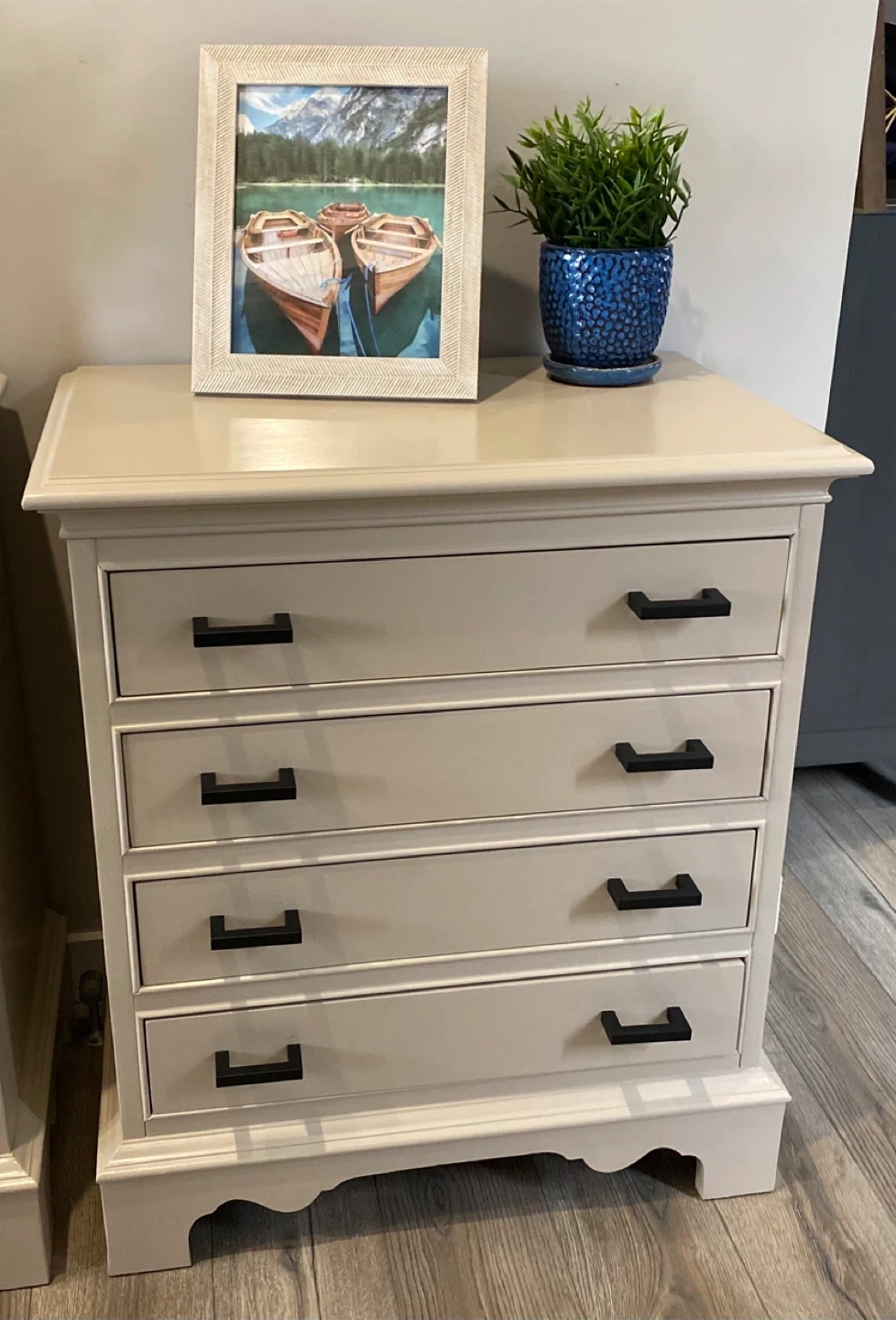 Painted in Cathedral Taupe with Satin top coatings