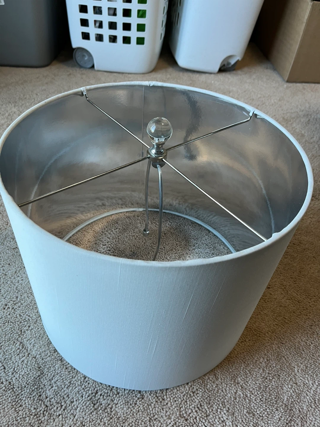 Selling a simple white lamp shade! It measures about 14 inches in diameter and stands 10.5 inches tall. It's in great shape and ready to brighten up your space