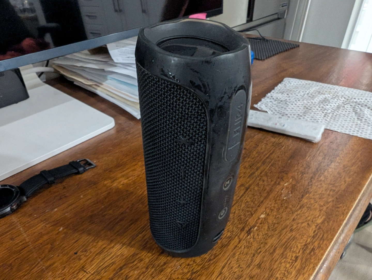 38Selling a JBL Flip 4 Bluetooth speaker in black. It's in good condition and ready to bring the tunes! This portable speaker is perfect for indoor and outdoor use.