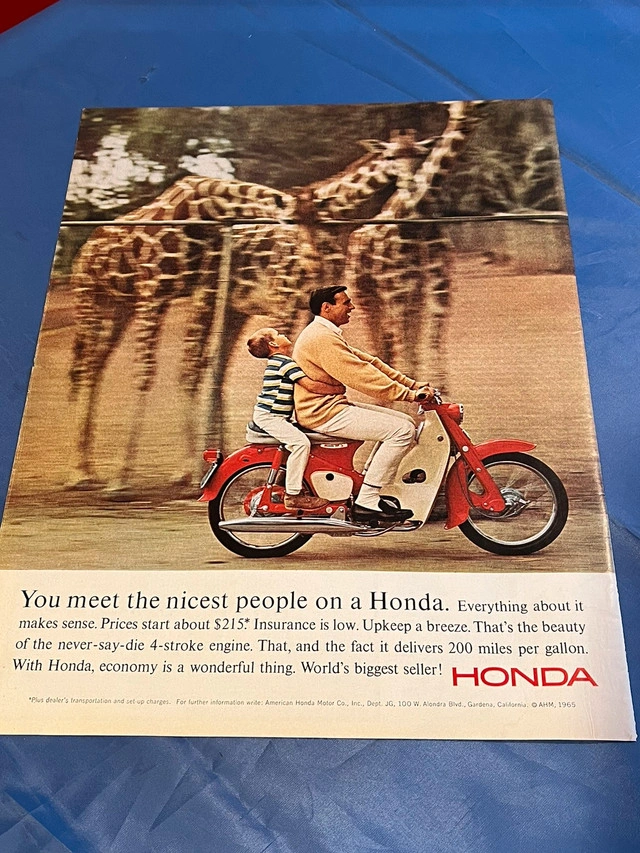 Buy & Sell1965 Honda 50 Original Ad1965 Honda 50 Original Ad$51965 Honda 50 Original Ad Size: 10-1/4" X 13-1/2" More Info: ArtWHERE TO MEETCheck LocationView MapSELLERDaleCrossfield100 reviews0 chats·0 favorites·0 views