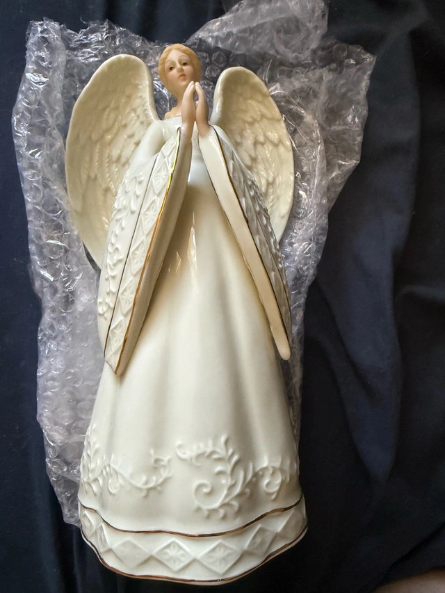 205This is a beautiful porcelain angel figurine that would make a lovely addition to any home. This angel is in excellent condition, with no chips or cracks. She has a serene expression and delicate features, making her a truly special piece. Perfect for collectors or anyone who loves angels. If you see this ad, it means she's still available and waiting to find her forever home!