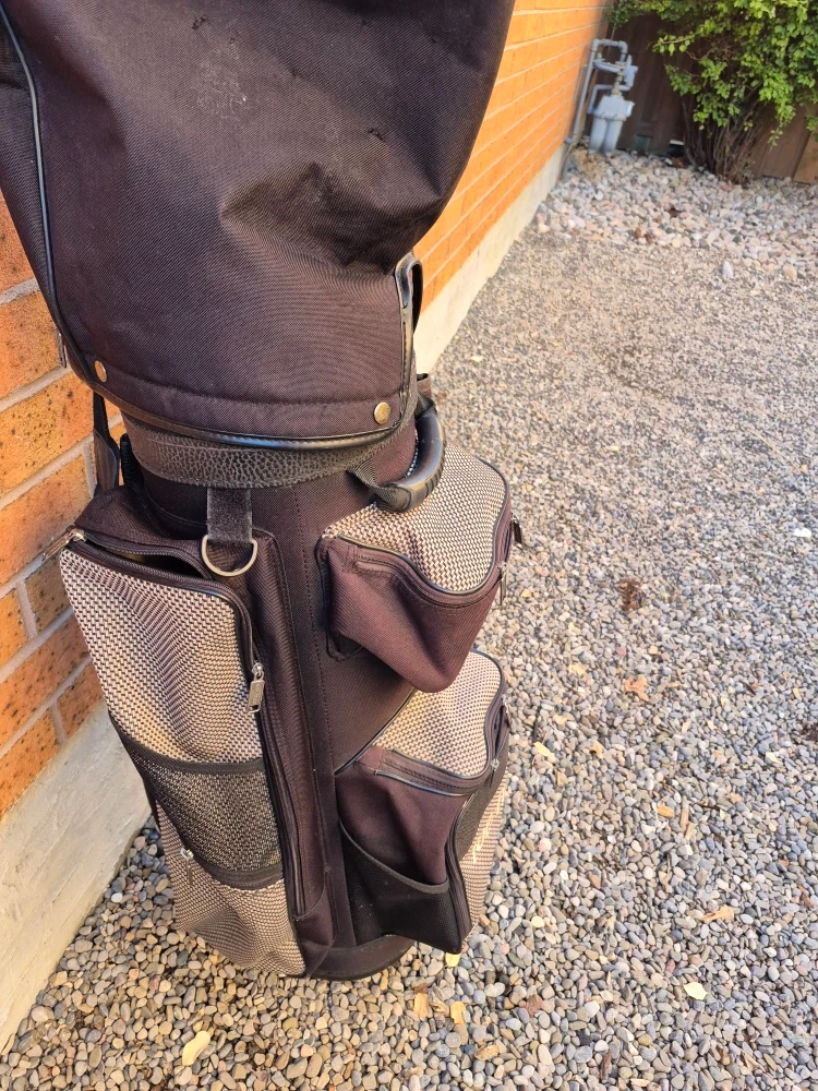 Selling a Top Flite golf bag in great condition. It's black and grey with lots of pockets for all your golfing needs! Perfect for carrying your clubs around the course