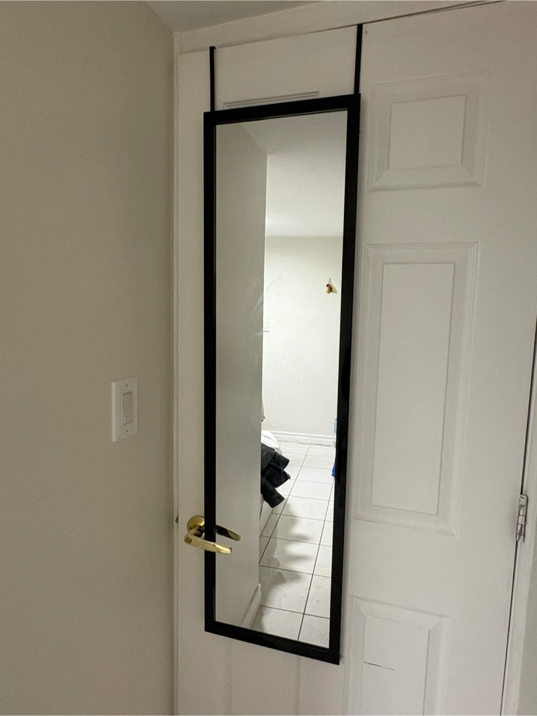 Selling an over-the-door mirror with a sleek black frame! It's a great space-saver and super easy to install. Perfect for bedrooms, closets, or anywhere you need a quick check before heading out the door