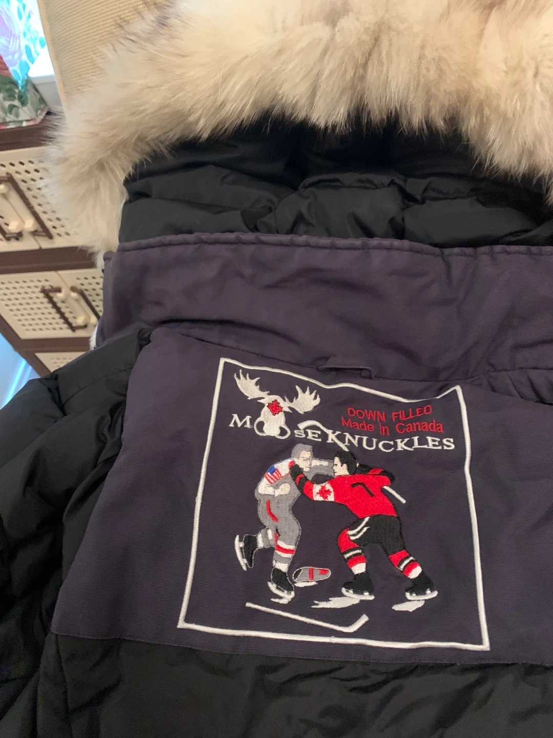 1000+Selling a Moose Knuckles down-filled winter jacket, proudly made in Canada! It's in great condition and ready to keep you warm this winter. The jacket features a unique design with an embroidered patch on the back. Perfect for those cold Canadian days!
