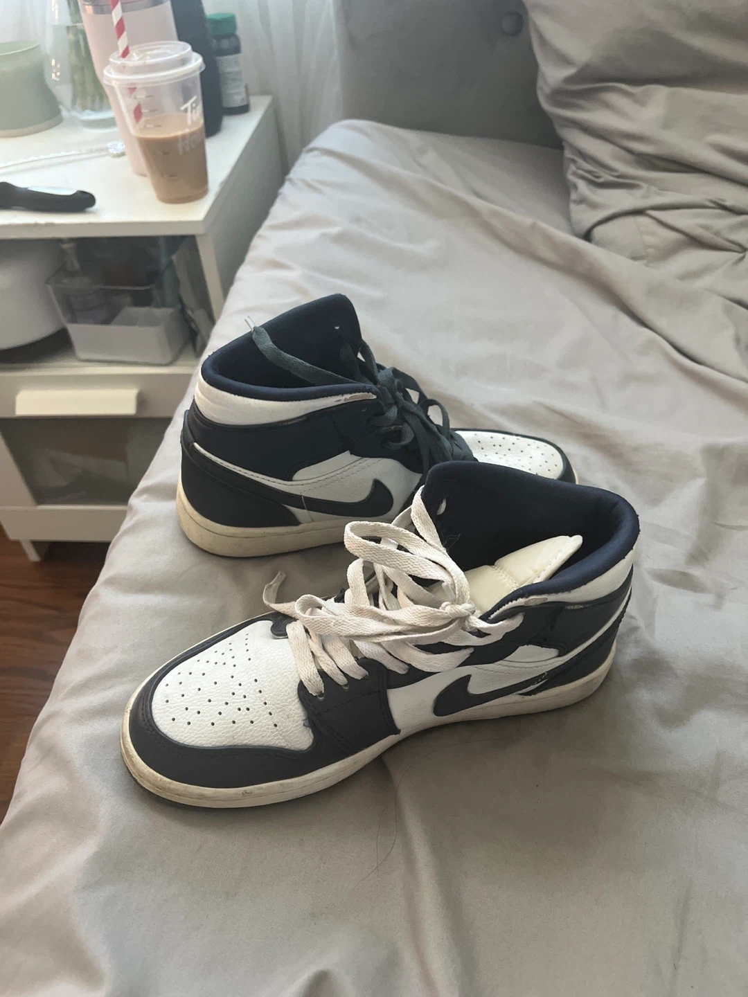 10Selling a pair of Air Jordan 1 Mid SE sneakers in size 7Y. They are in good condition and ready for a new home