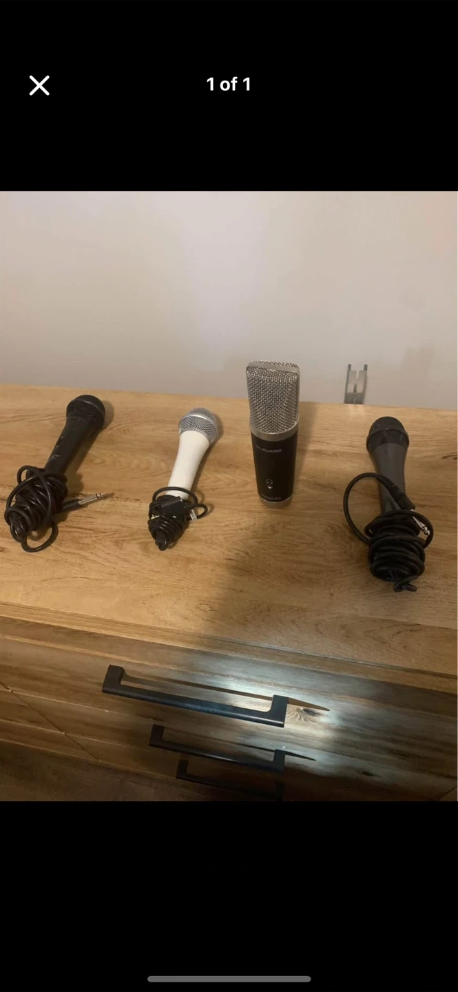 10Selling a collection of microphones. Includes a larger microphone from M-Audio and a couple of smaller ones. All in good working condition!
