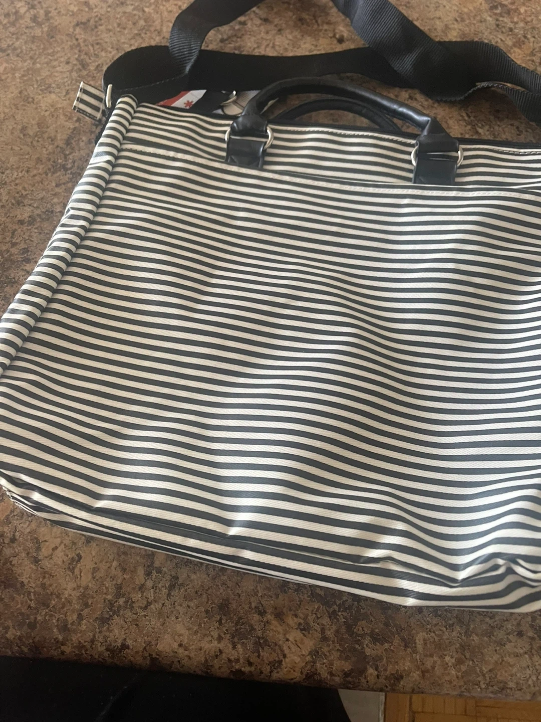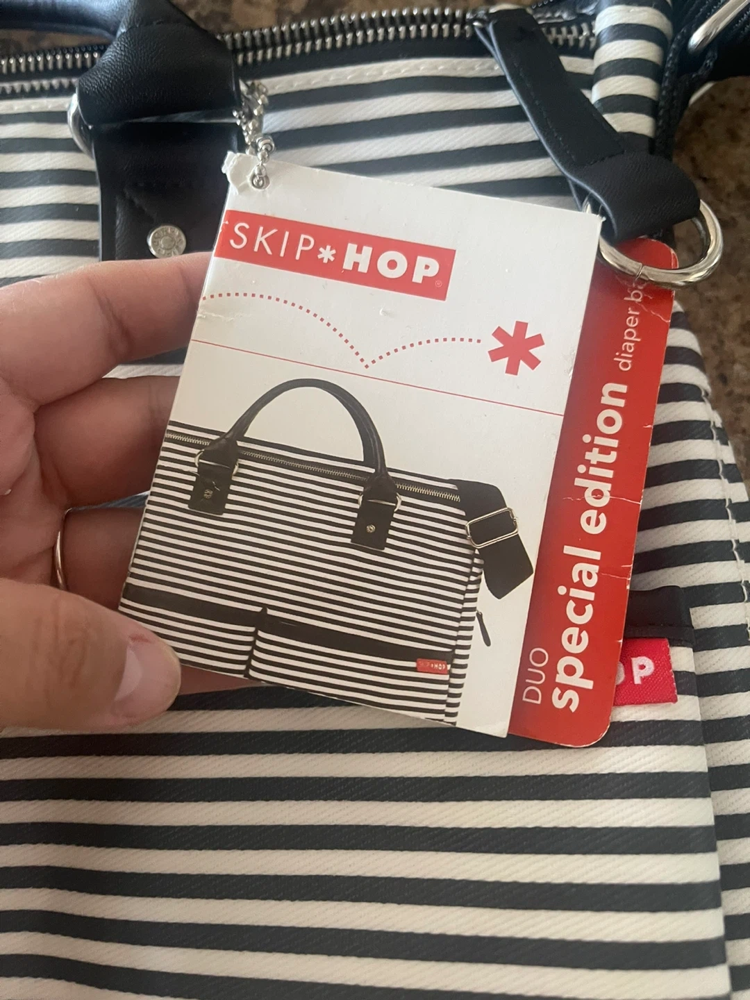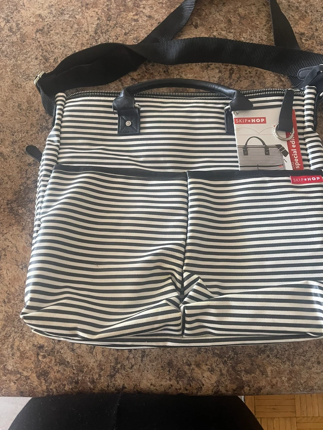 56Selling a Skip Hop Duo Special Edition diaper bag in a stylish striped pattern! It's in great condition and ready for a new home. This bag is super functional and perfect for keeping all your baby essentials organized while you're on the go