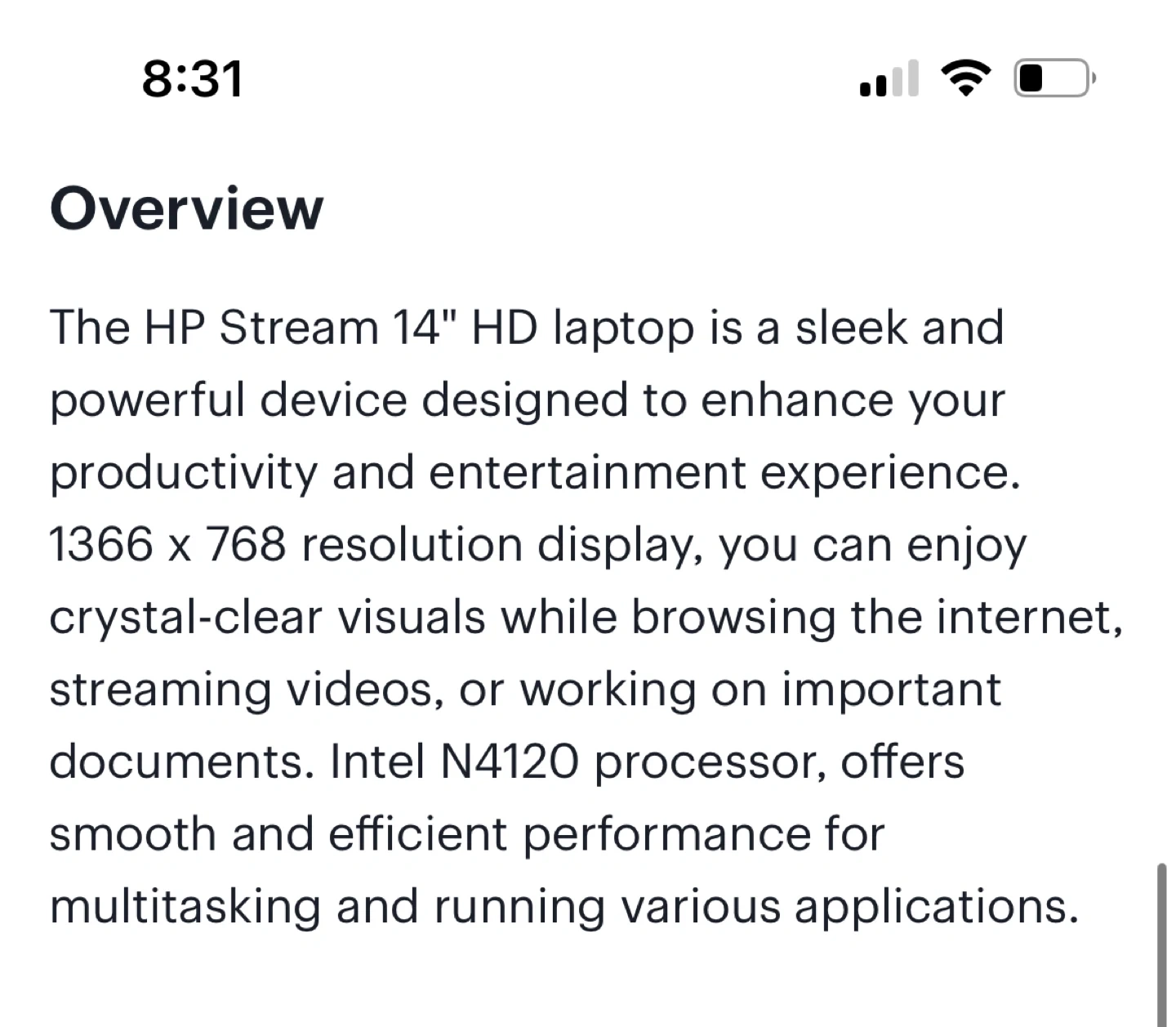 Selling an HP Stream 14" HD laptop. Barely used just for exam season, battery in good condition, efficient performance for multitasking. Comes with a charger
