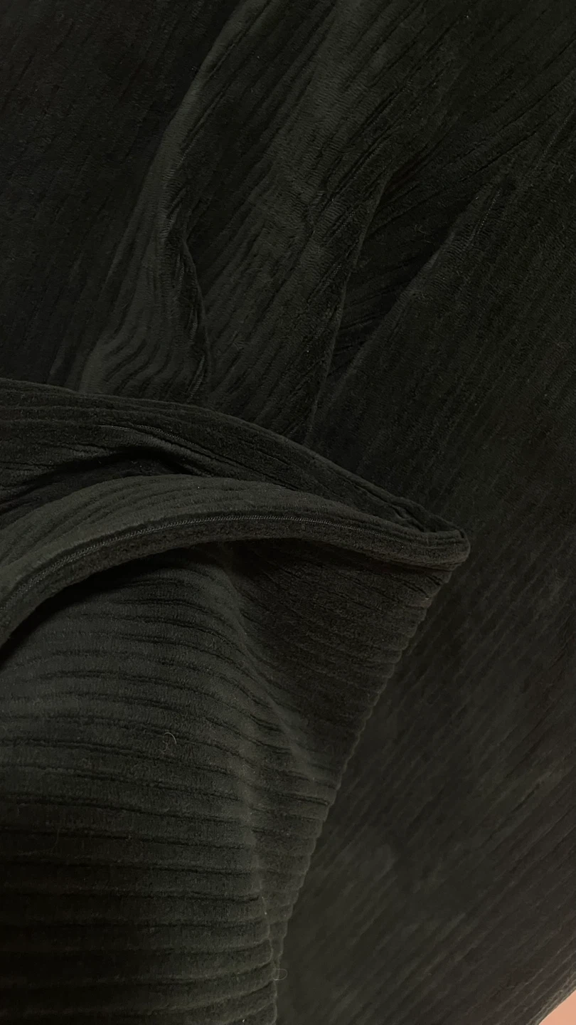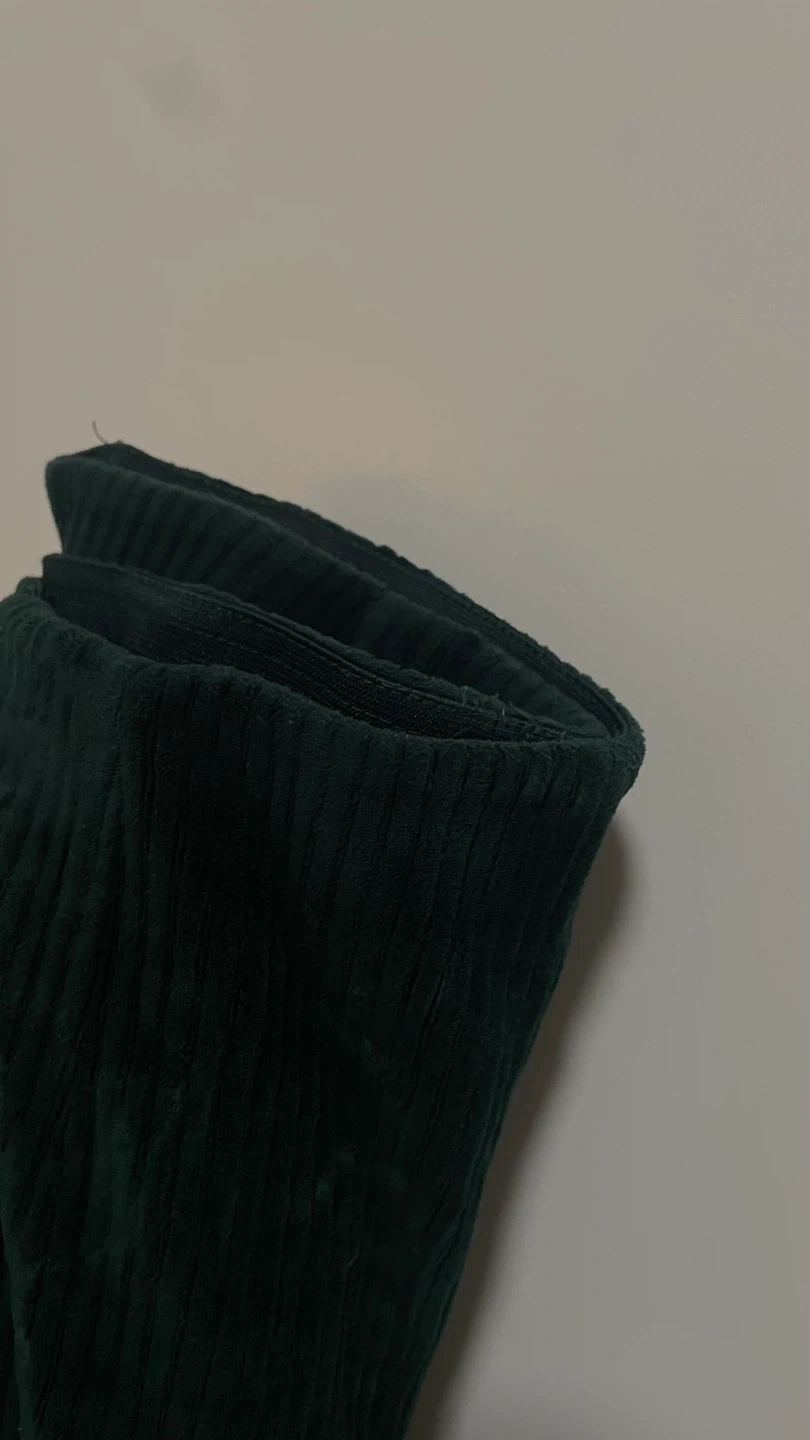 Thick, plush and soft - perfect for a fall/winter. Pants flare very slightly at the bottom, very comfortable fit. Has 2 side pockets & stretchy, elsastic waistband.