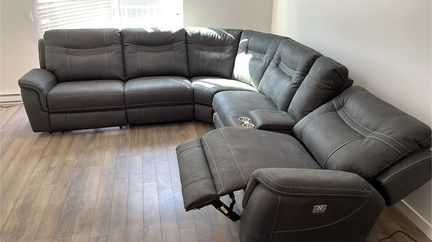 Grey Sectional Sofa with Recliner & Dining Table Set