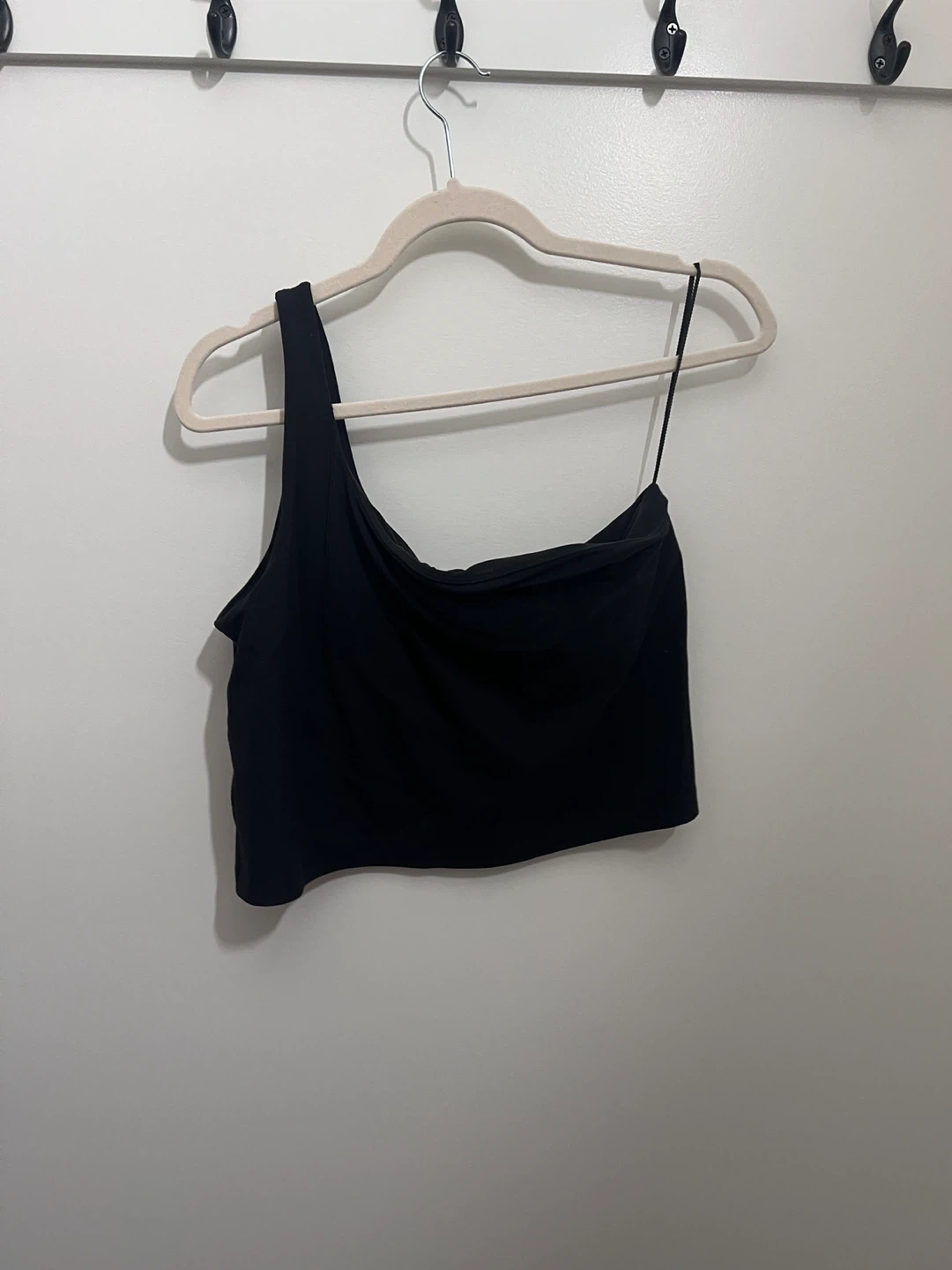 Selling a Lululemon one-shoulder tank top in black! It's in great condition and perfect for workouts or everyday wear. The sleek design and comfortable fit make it a stylish addition to your activewear collection Never worn Pickup SW Edmonton