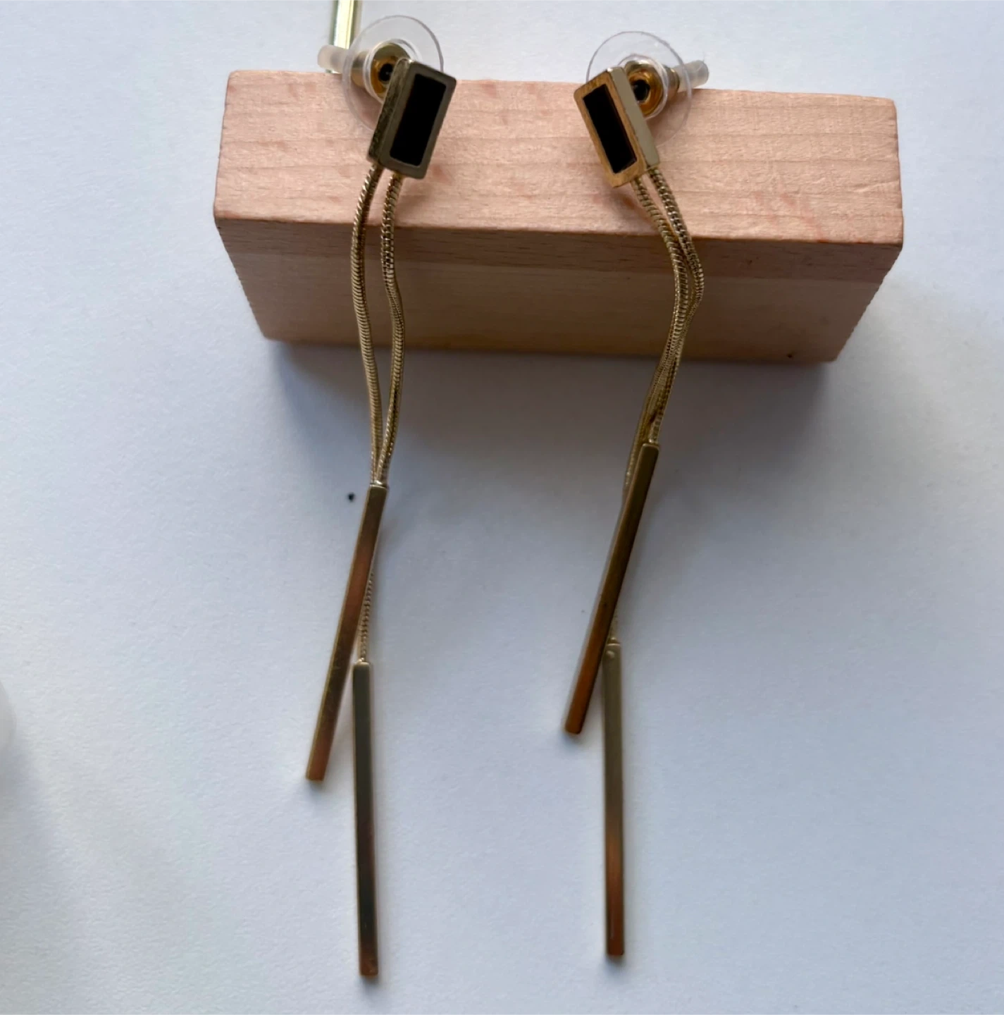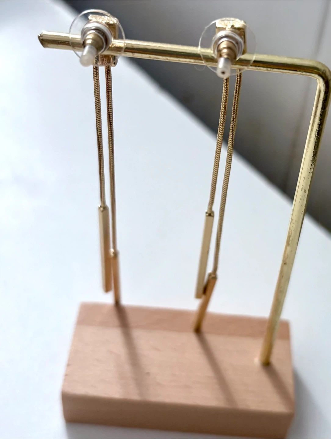 1000+These are a pair of gold dangle earrings. They have a simple, elegant design that would be perfect for any occasion. They are in great condition! Never worn No box Price is firm Cash only Pick up only