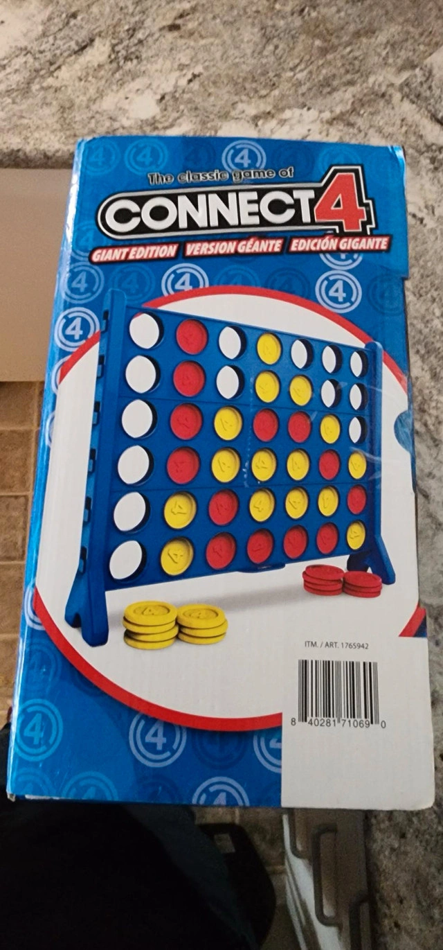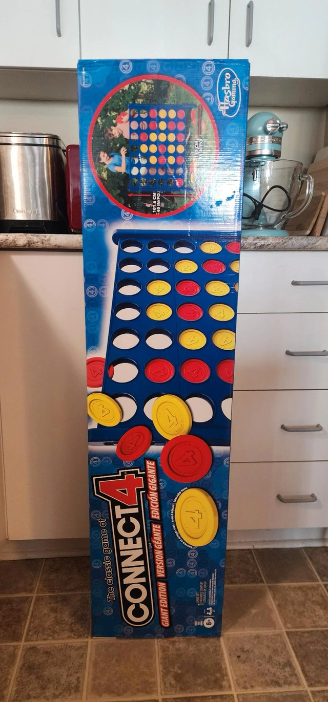 Get ready for oversized fun with this Connect 4 Giant Edition game! This game is in new condition and ready for a new home. Features: * Classic Connect 4 gameplay * Giant size for extra fun * Durable construction If you're reading this, yes, it's still available!