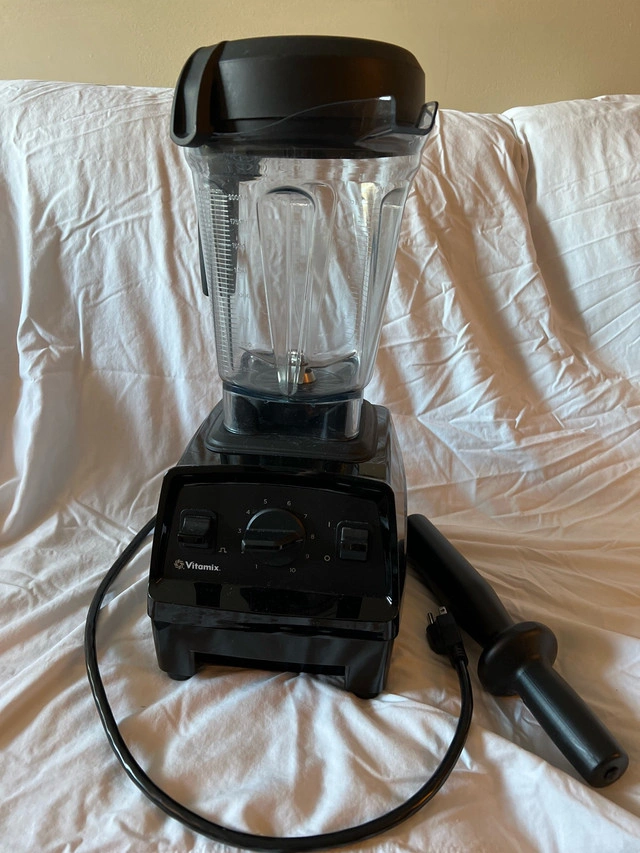 This is a used Vitamix blender, ready to whip up your favourite smoothies and recipes with ease! This powerful machine has been well-cared for and is in great working condition. The Vitamix is known for its durability and performance, making it a staple in any kitchen. Specifications: * Brand: Vitamix * Model: (Unable to determine the exact model from the images, but it is a classic Vitamix style) * Colour: Black * Condition: Used, but in excellent working order. Why not add a little zing to your daily grind? This blender is just waiting to be the star of your kitchen counter. Don't miss out! If the ad is up, the blender is available!