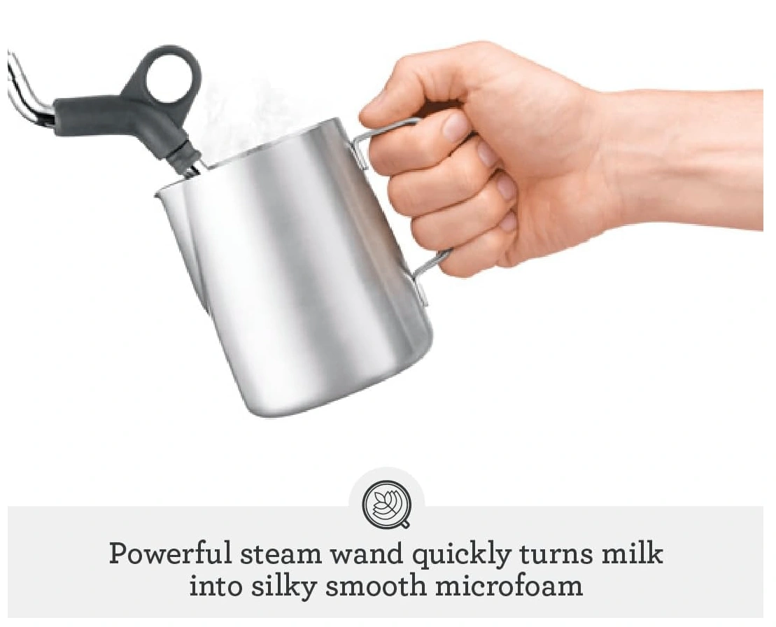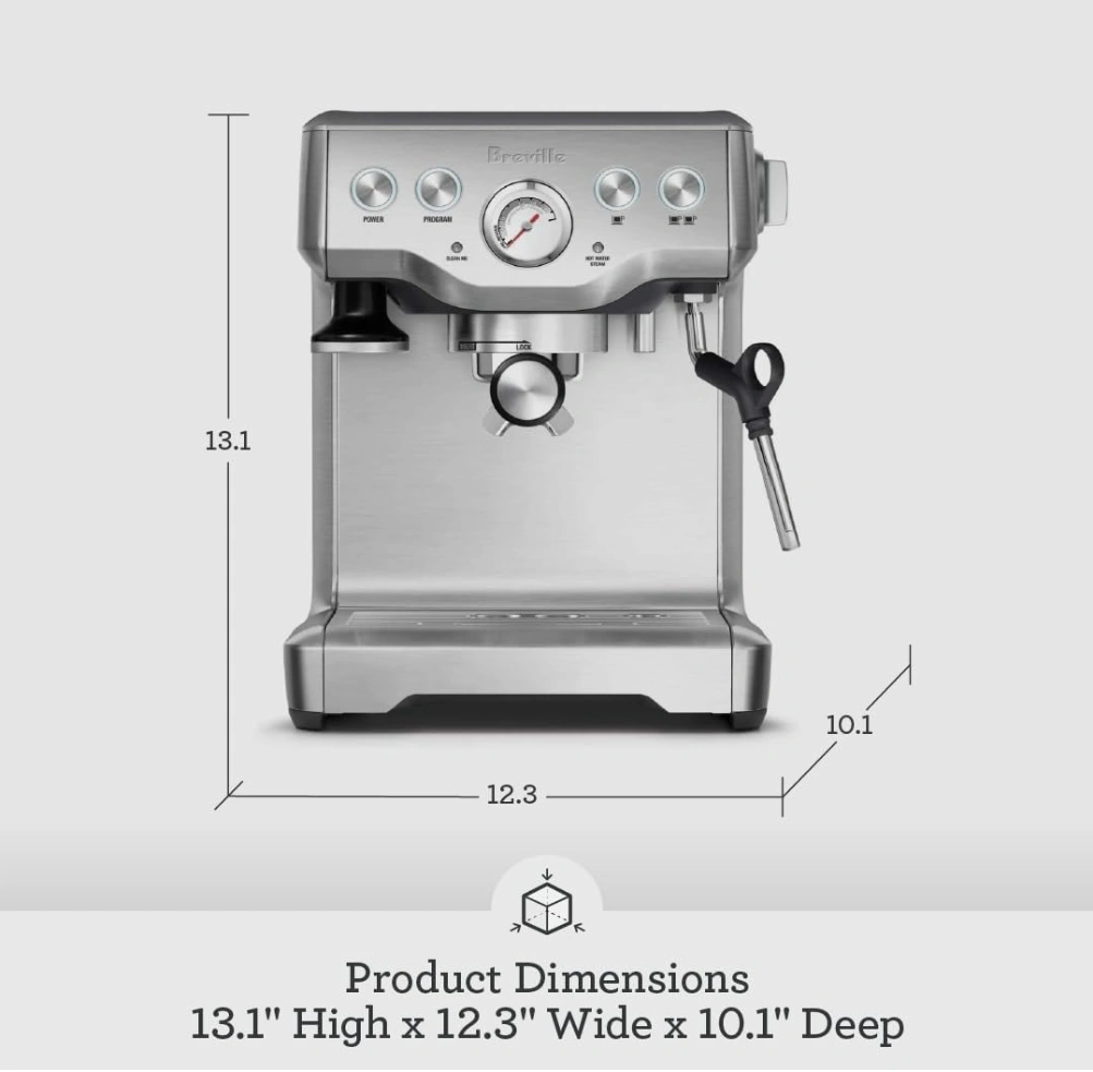 Dial in café-quality espresso with the Breville Infuser (BES840BSS). 54 mm portafilter, low-pressure pre-infusion, PID temperature control, front pressure gauge, and a powerful steam wand for latte art. Programmable 1-cup/2-cup buttons, hot-water/steam toggle, and removable drip tray.