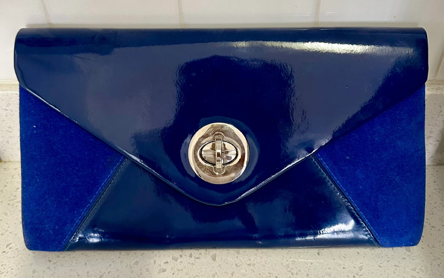 Selling a cute blue clutch purse! It's pretty new and features a unique envelope design with a gorgeous clasp and velvet sides. Perfect for a night out or special occasion, this clutch adds a pop of colour to any outfit. Bought in Switzerland πŸ‡¨πŸ‡­.