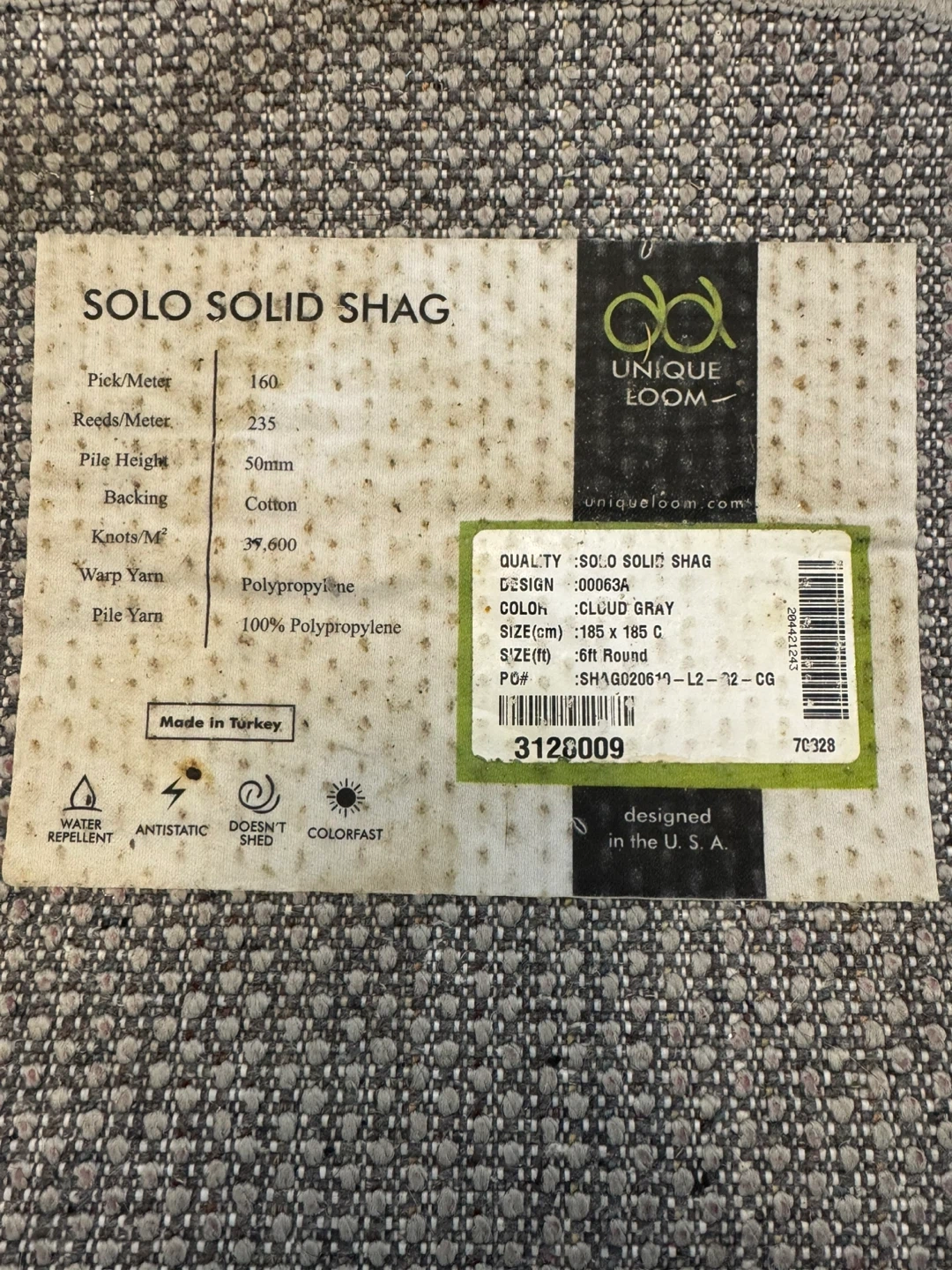 Add some cozy texture to your space with this Unique Loom Solo Solid Shag rug! It's a 6ft round rug in a cloud gray colour. Made with 100% polypropylene pile yarn, it's water repellent, antistatic, and colourfast. Perfect for adding a soft touch to any room!