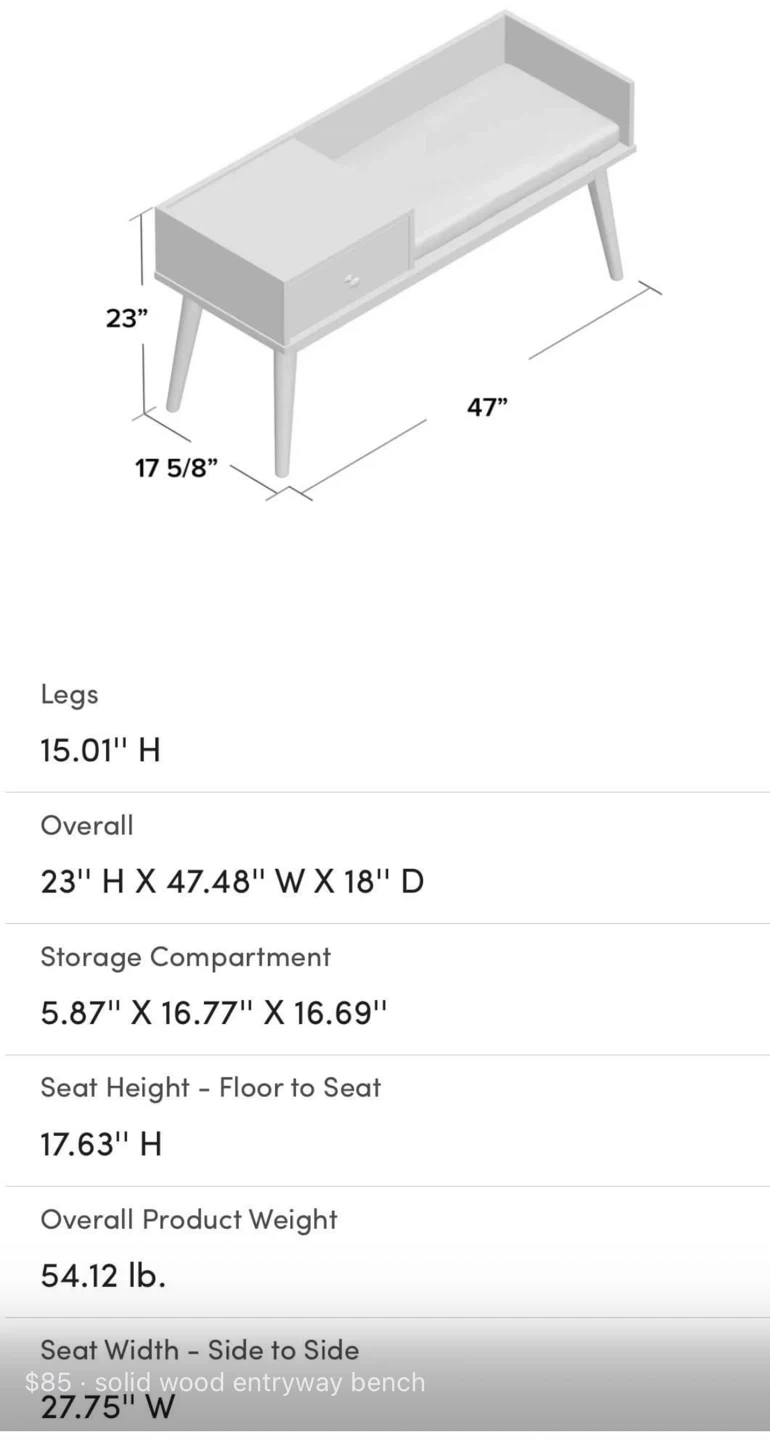 Solid wood entryway bench. Rated for 300lbs.