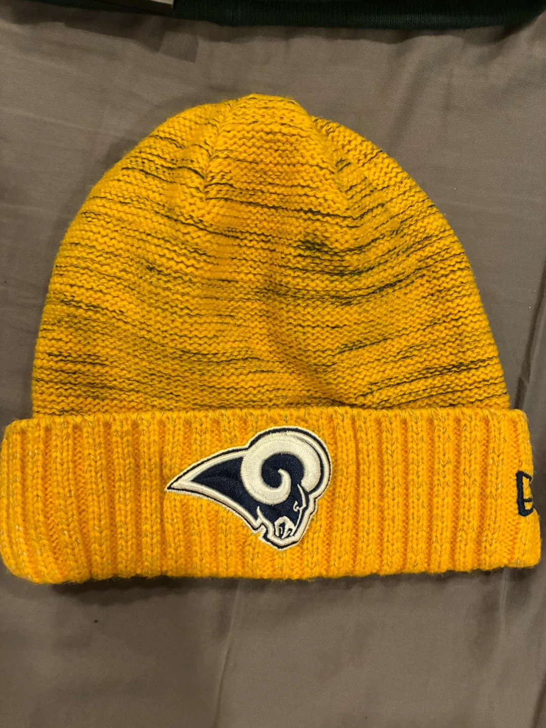 51Selling a Los Angeles Rams beanie from New Era! The main colour is yellow. It's in great condition and ready to keep you warm during those chilly games